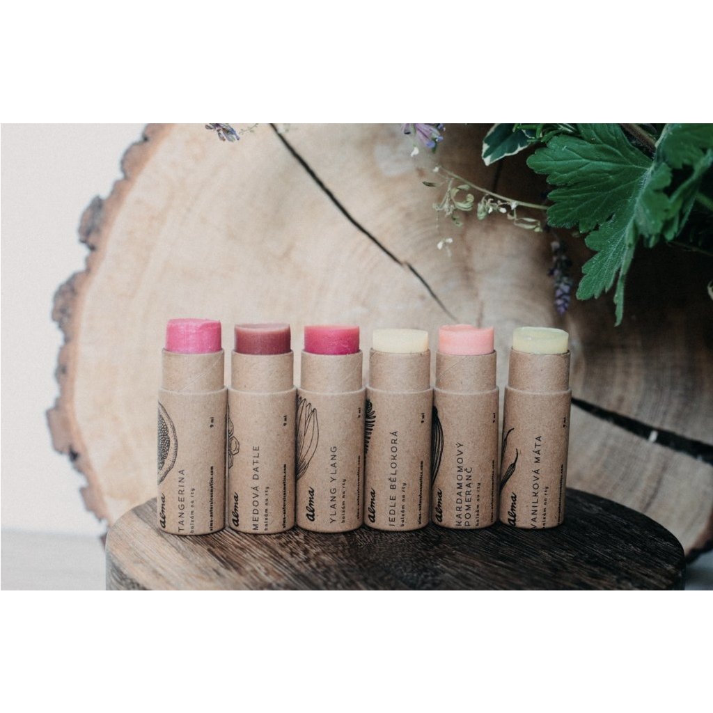 Složení: Mangové máslo; Bio včelí vosk; Vanilkový extrakt v jojobovém oleji lzs; Přírodní vitamin E; esenciální olej Jedle bělokorá.