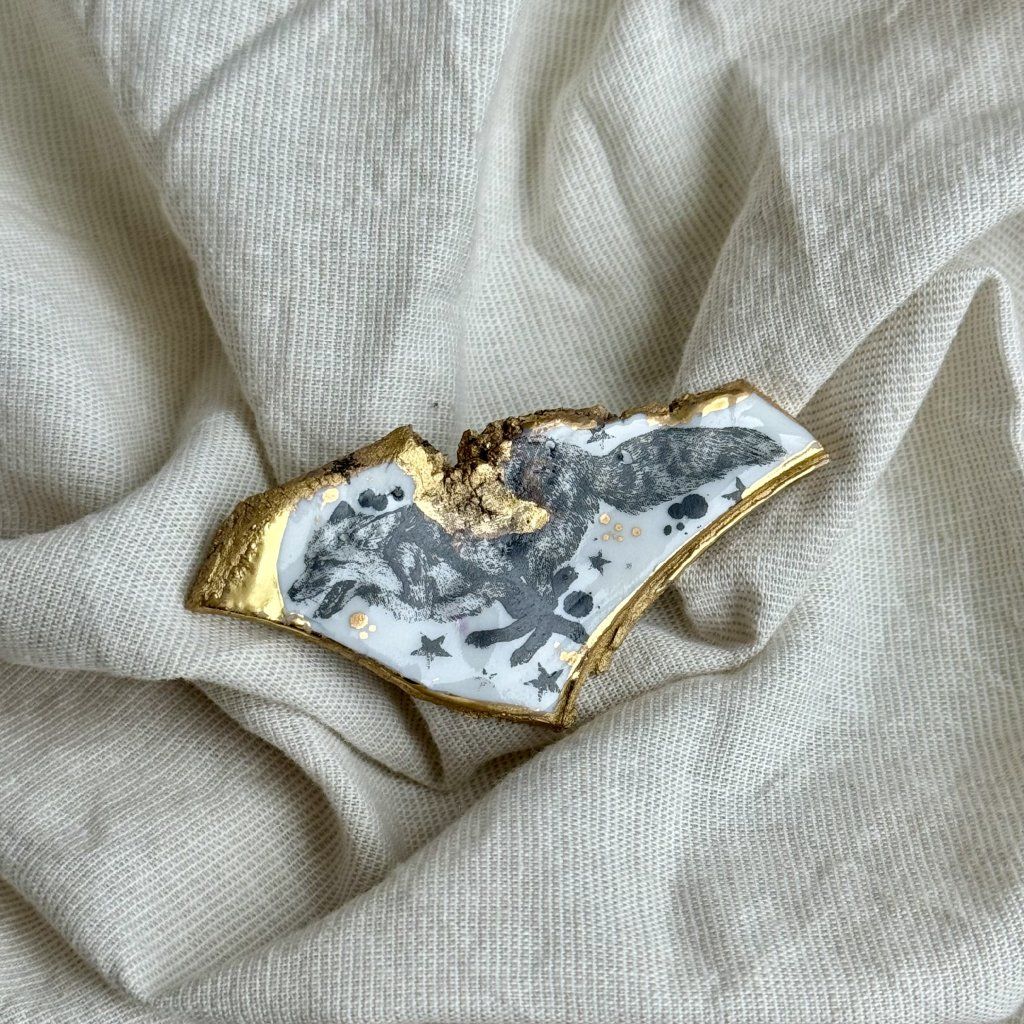 Ručně vytvářená brož z kvalitního bílého porcelánu.