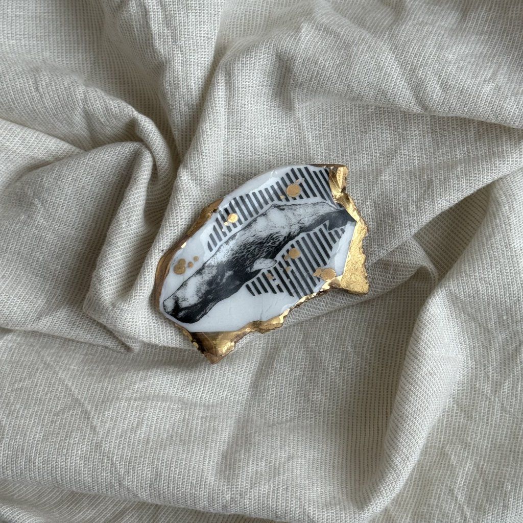 Ručně vytvářená brož z kvalitního bílého porcelánu.