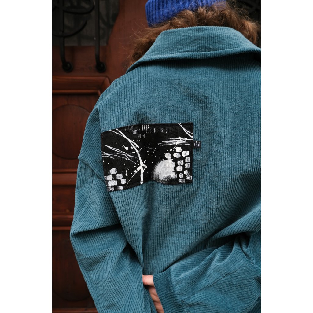 Originální grafika nebo detail na zadní straně dělá z této bundy unikát – žádná univerzální „věc z regálu“, ale kousek s osobitým rukopisem.