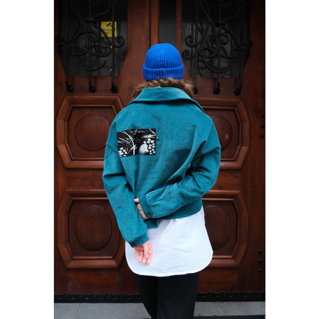 Originální grafika nebo detail na zadní straně dělá z této bundy unikát – žádná univerzální „věc z regálu“, ale kousek s osobitým rukopisem.