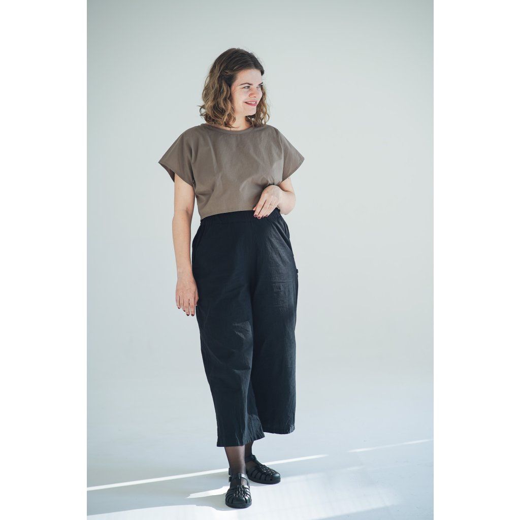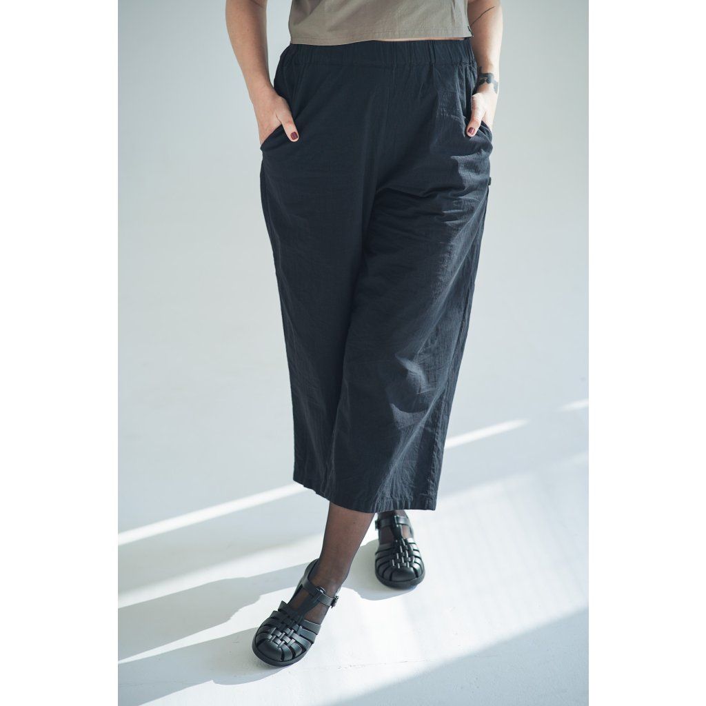 Kalhoty Culottes jsou ušité z velmi příjemné lehoučké bavlny – popelínu s přirozeným, mírně zmačkaným efektem. Kalhoty jsou volné a vzdušné a vhodné na celoroční nošení. V teplejších dnech vám v nich bude skvěle a v zimě se silonkami vytvoříte skvělý elegantní outfit. Culottky mají v pase gumu a nesmí chybět ani praktické kapsy. Tento model je vhodný i pro postavy s širšími boky. Tyto kalhoty šijeme pravidelně už několikátým rokem.