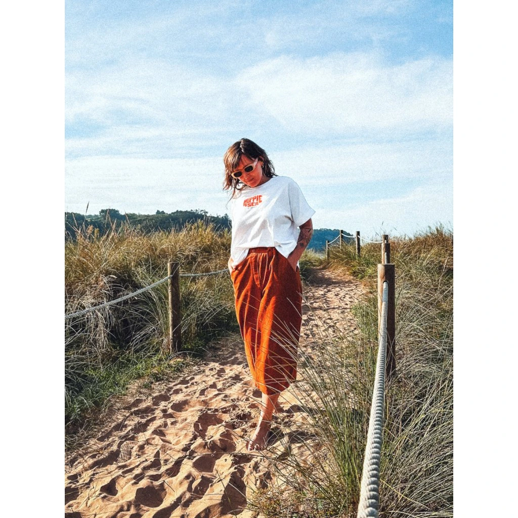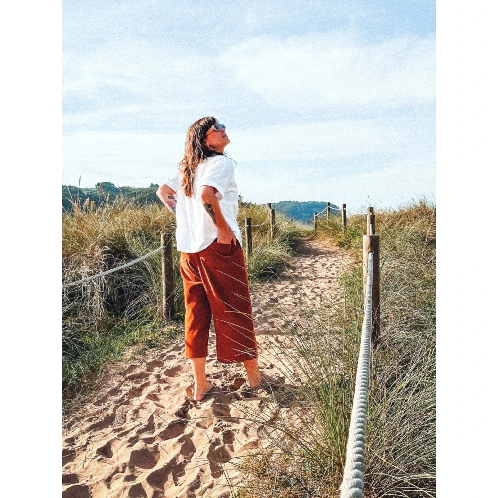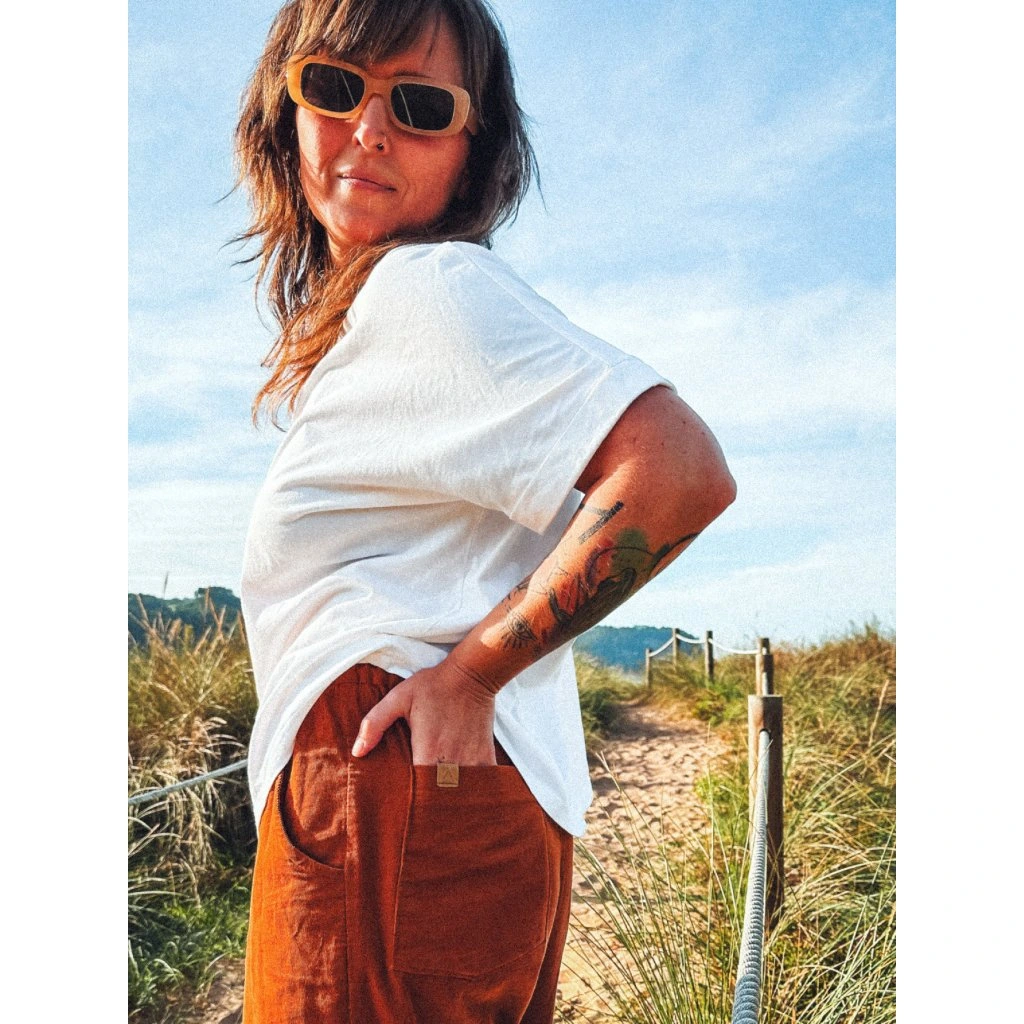 Nemůžeme bez nich být. Na léto vzdušný len, na zimu ultra příjemný manšestr tenotkrát v tenkém proužku a navíc s kapsami na zadní straně. Divoký styl do ulic i do přírody. Jednou se do nich zachumláš a nebudeš je chtít sundat, kombinovatelnost s čímkoliv je vysoce návyková, pohoda neskutečná.