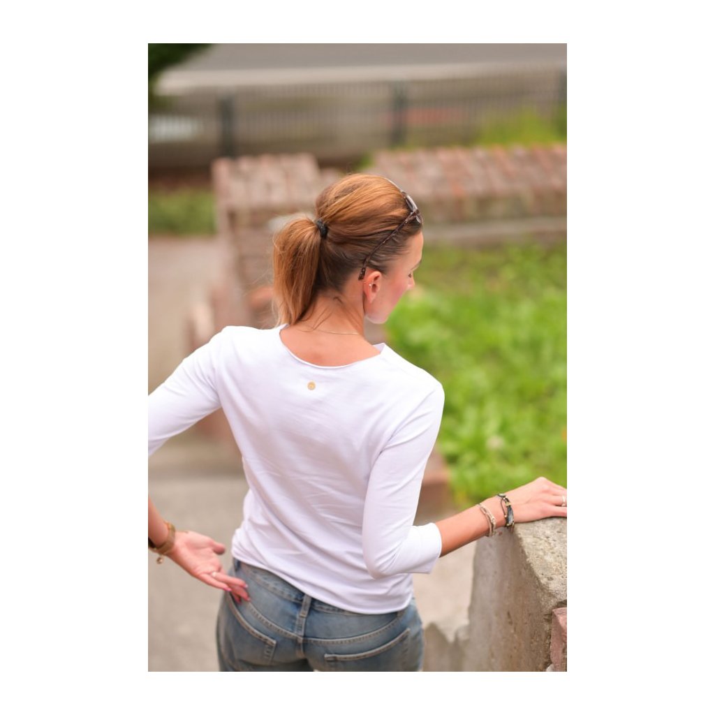 Tričko Vivien se od ostatních odlišuje nezačištěnými švy, což je sice nenápadný detail, ale při nošení to dělá pěkný efekt. Neutrální barvu trika snadno doplníte dalšími kousky a doplňky z šatníku. Rukávy mají tříčtvrteční délku.