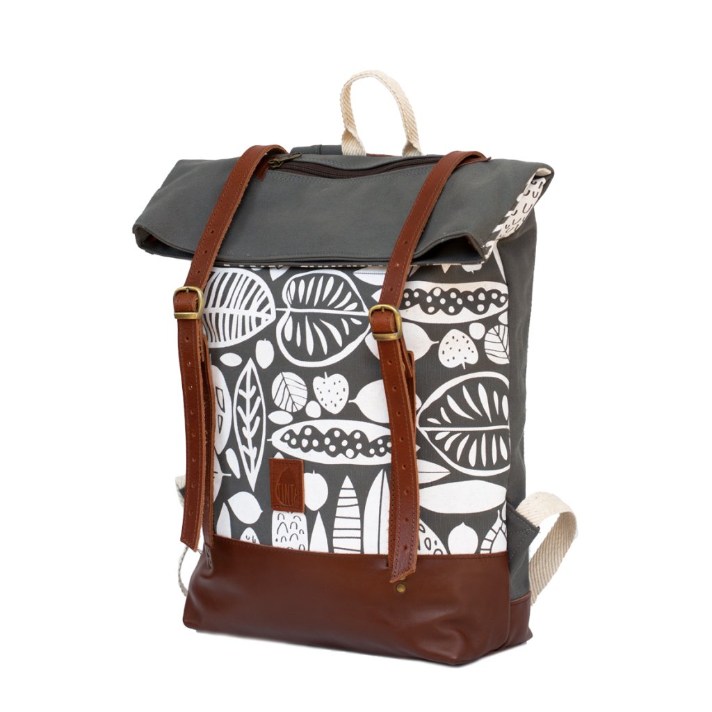Stylový osobitý batoh z bavlněného plátna s voděodolnou vrstvou na každodenní nošení. Ramínka se zapínají na patentky pro snadnější otevírání. Do batohu se pohodlně vejde notebook o šířce do 27 cm.