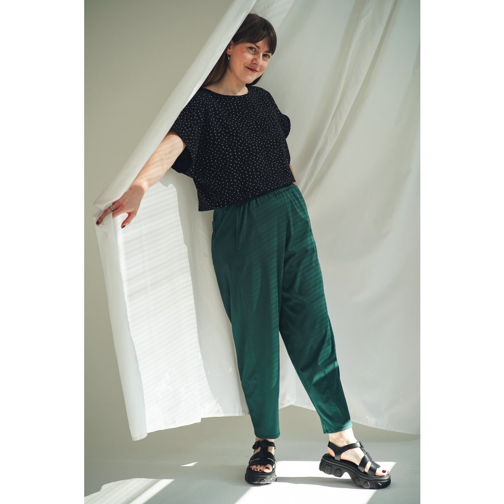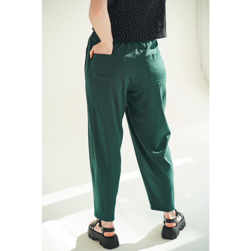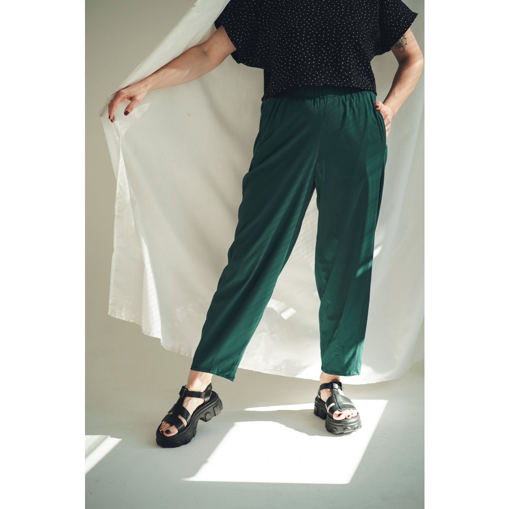 Kalhoty Barell jsou ušité z viskózové látky s příměsí elastanu. Tyto kalhoty jsou krásně slývavé a mají elegantní vzhled. Zároveň zůstávají vzdušné a velmi pohodlné. V pase mají pružnou gumu pro maximální komfort a nechybí ani hluboké kapsy. Stylový a pohodlný kousek, který snadno unosíte každý den.