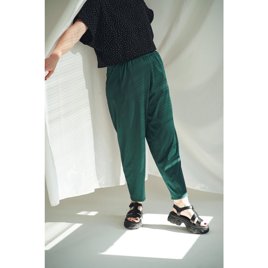 Kalhoty ve střihu barell (soudkový střih) jsou typické jemně zaoblenou siluetou – mají lehce širší objem v oblasti boků a stehen a směrem ke kotníkům se zužují. Díky tomu vytváří moderní, ženskou linii, zvýrazní pas a krásně tvarují postavu.