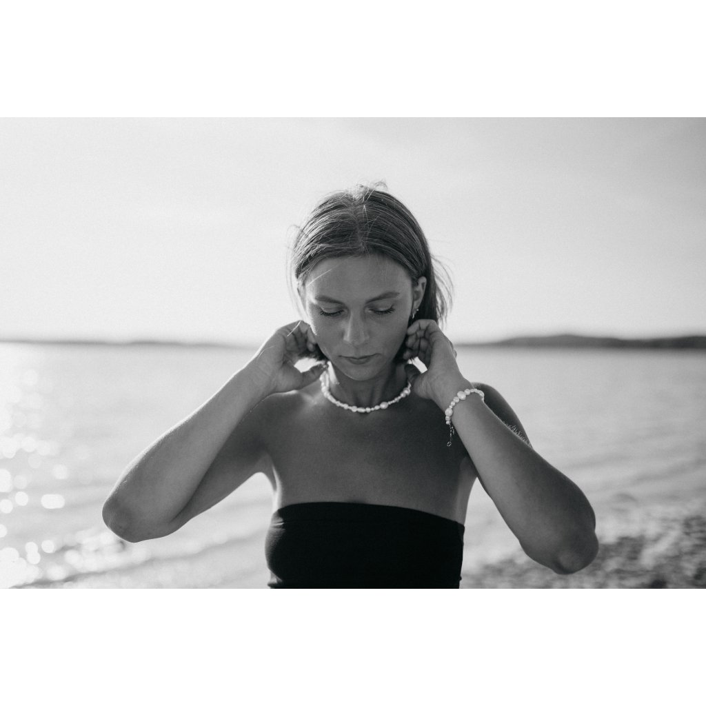 Perly, minerály ani drahokamy by neměly přicházet do kontaktu s vodou, kosmetikou, potem - časem dochází k většímu opotřebení. Na sport, spaní a jiné zátěžové aktivity doporučuji všechny šperky sundávat, abyste prodloužili jejich životnost. Výjimkou jsou celokovové šperky z oceli bez kamenů či perel.