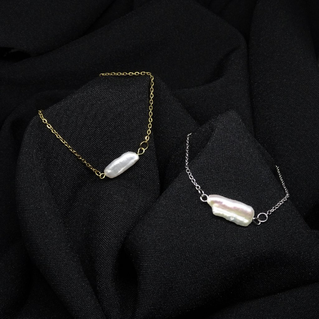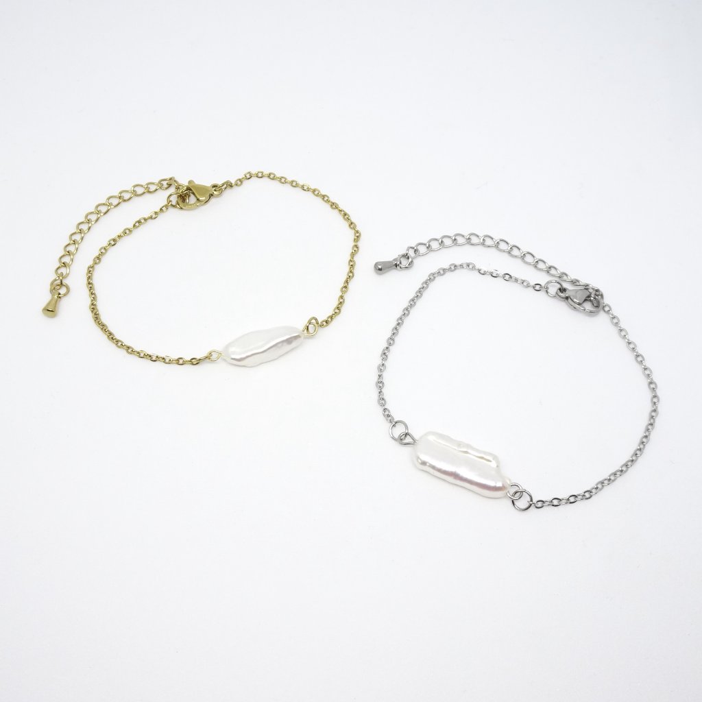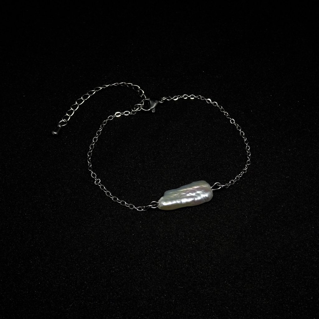 Elegantní náramek z nerez oceli a s nepravidelnou říční perlou.
