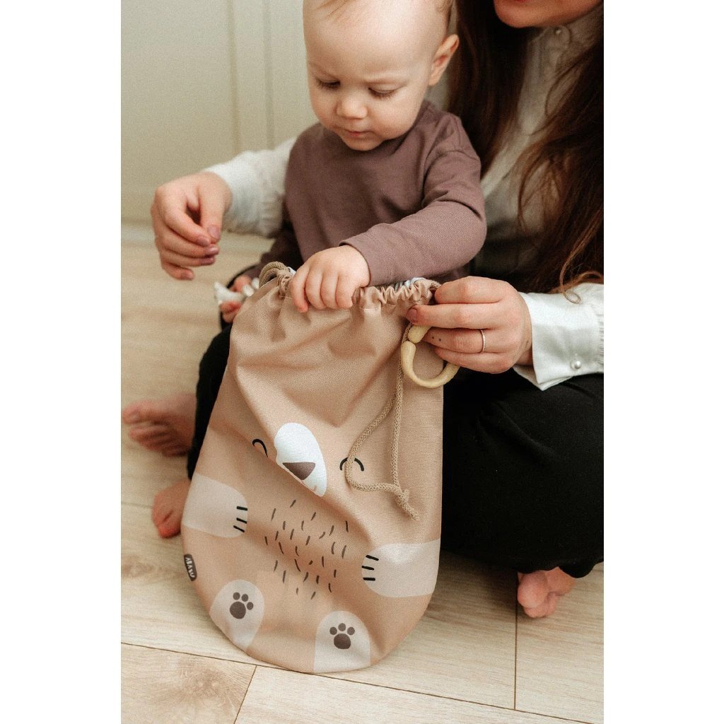 - Na hračky do kočárku: Potřebujete zabavit miminko v kavárně nebo na kroužku a všude se válí hračky? Snadno je schováte do pytlíku pod kočárek.