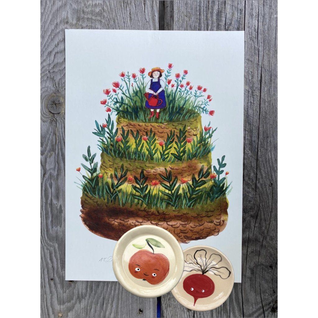 „Zahradní“ duo – autorský tisk & talířek 🍎