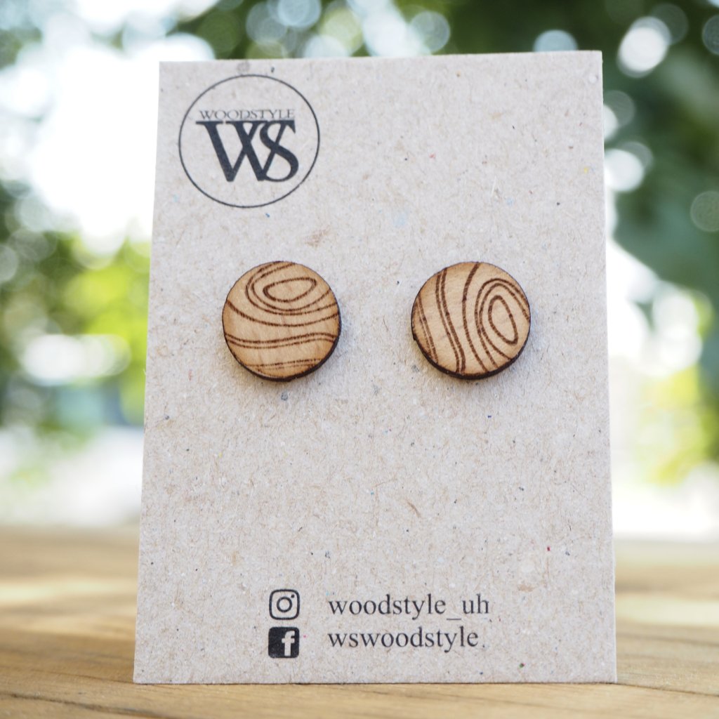 Náušnice jsou vyrobeny pomocí laseru z buku, který je ošetřen proti vlhkosti.