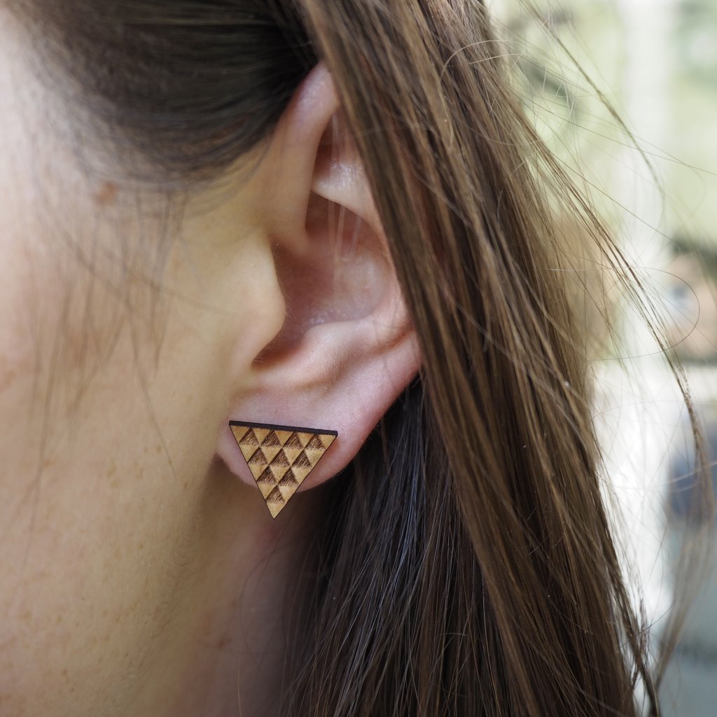 Náušnice jsou vyrobeny pomocí laseru z buku, který je ošetřen proti vlhkosti.