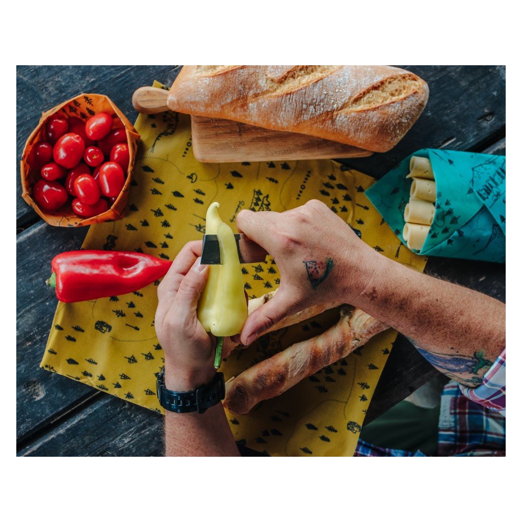 Včelobal, přírodní obal ze 100% BIO bavlny, který umožňuje potravinám dýchat. Díky voskové vrstvě zabraňuje oxidaci a vaše jídlo udržuje déle čerstvé. Vyzkoušejte jeden obal na celý rok a se snadnou péčí.