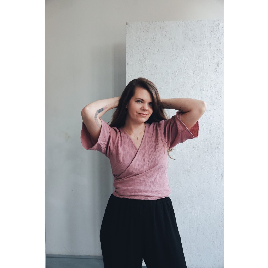 Oboustranná halenka Wrap, kterou můžete nosit na několik způsobů a na mnoho různých příležitostí. Má široké 3/4 rukávy, je ušitá z mušelínu a když si ji zavážete výstřihem dopředu, tak je vhodná i na kojení. V zimě můžete halenku i skvěle vrstvit s naším trikem Roll, Siluet nebo se zateplovací vrstvou z merino košilky. V létě vám v ní bude krásně díky vzdušnému materiálu. Vypadá skvěle jak ke kalhotám do pasu tak i k sukním či kraťasům.