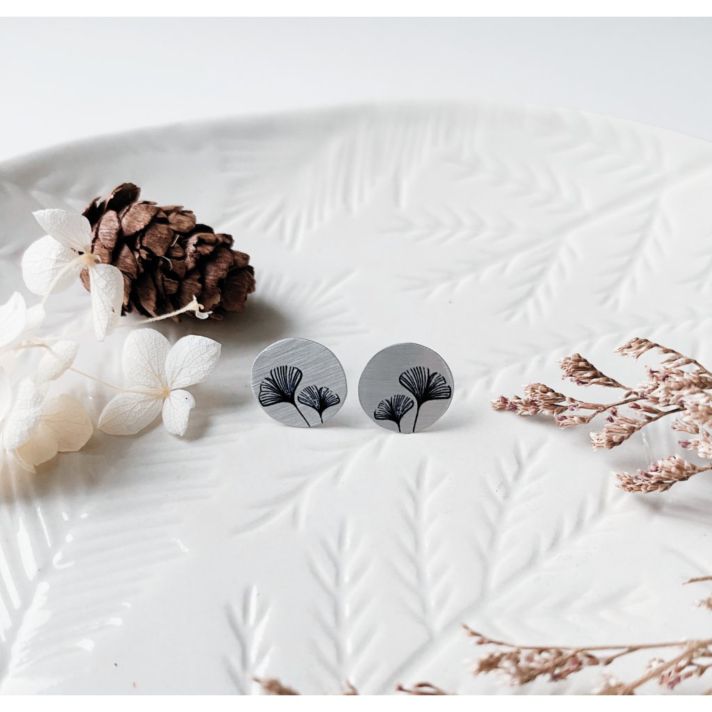 Lehounké hliníkové náušnice s autorským motivem – jemný a zároveň výrazný tak akorát, aby doplnil tvůj každodenní styl i elegantní outfit. S inspirací v listech jinanu – symbolech síly, klidu a krásy.