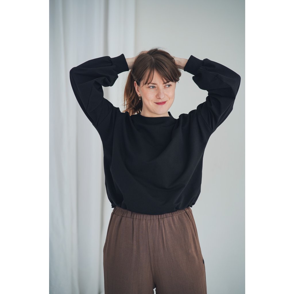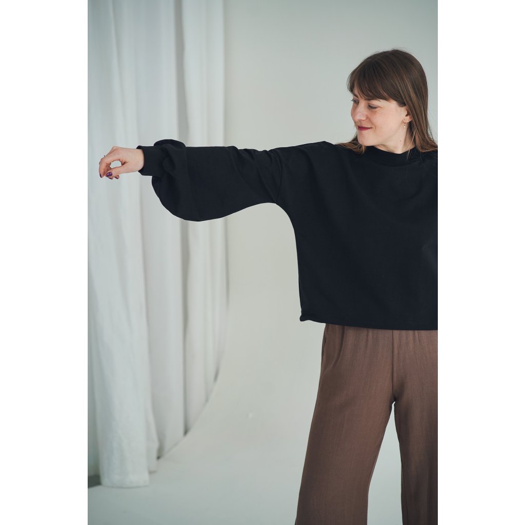 Mikina Fluff ve střihu crop-top s lehce nařasenými rukávy. Mikina má stahování na gumičku, takže ji můžete stáhnout a nařasit nebo nosit volně, rovnou. Skvěle se kombinuje s našimi vestami, ale sluší jí to i s šaty a sukněmi. Naším cílem bylo vytvořit univerzální mikinu, která se dá nosit v různých variantách a bude to základ do vašeho minimalistického šatníku.