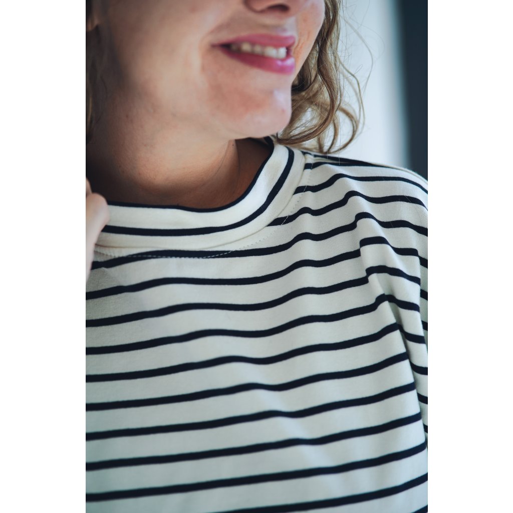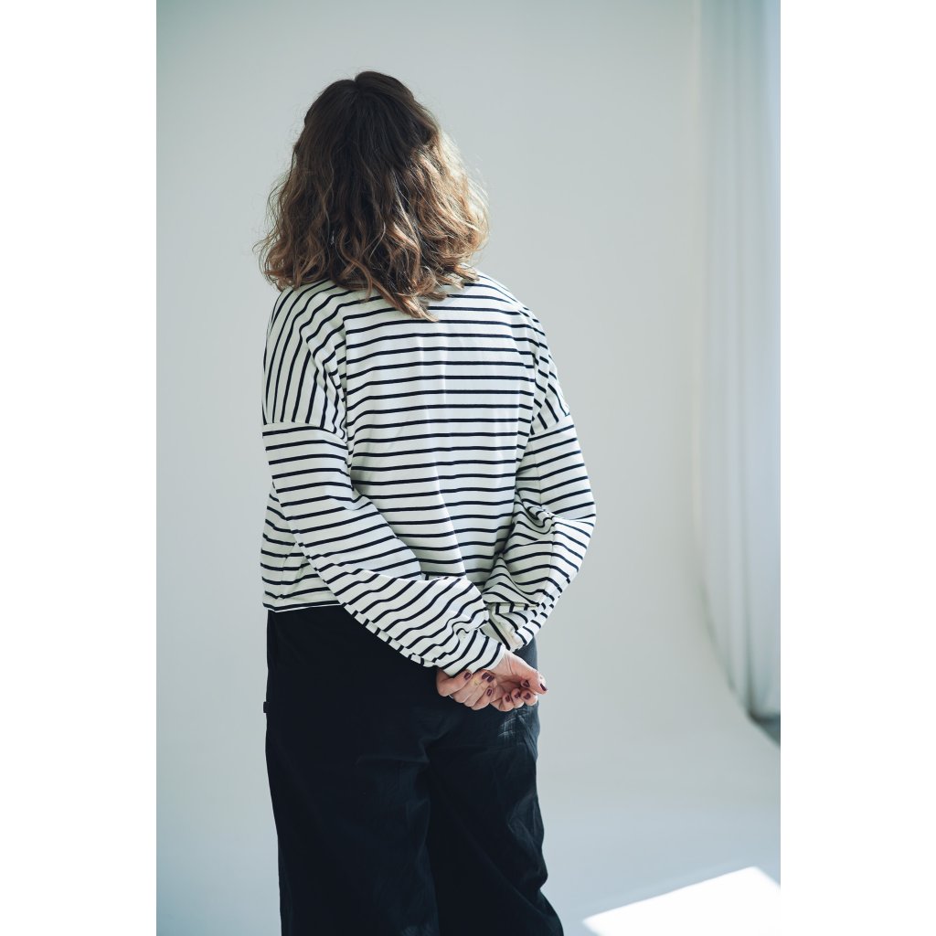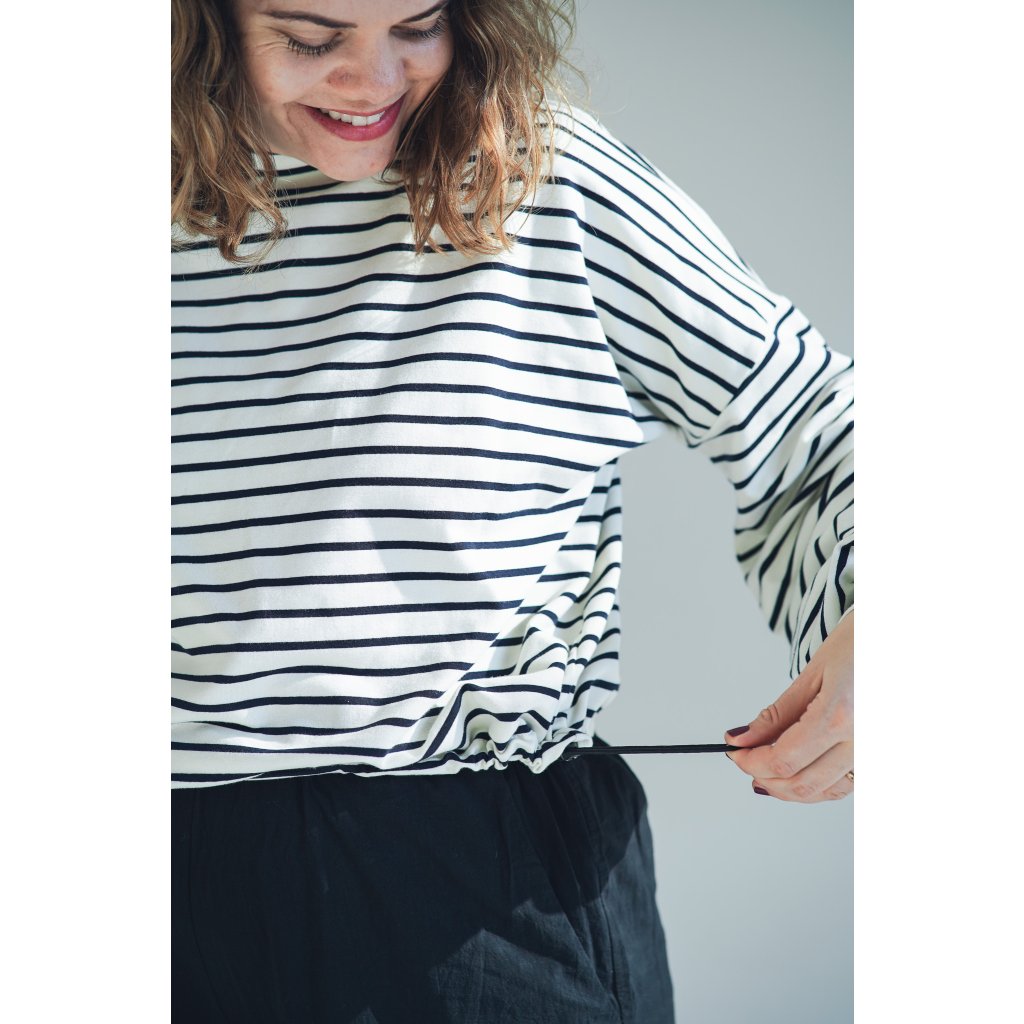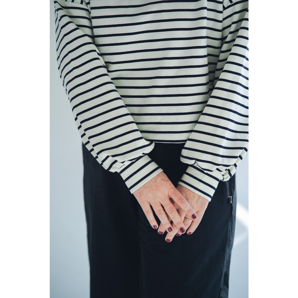 Mikina Fluff ve střihu crop-top s lehce nařasenými rukávy. Mikina má stahování na gumičku, takže ji můžete stáhnout a nařasit nebo nosit volně, rovnou. Skvěle se kombinuje s našimi vestami, ale sluší jí to i s šaty a sukněmi. Naším cílem bylo vytvořit univerzální mikinu, která se dá nosit v různých variantách a bude to základ do vašeho minimalistického šatníku.