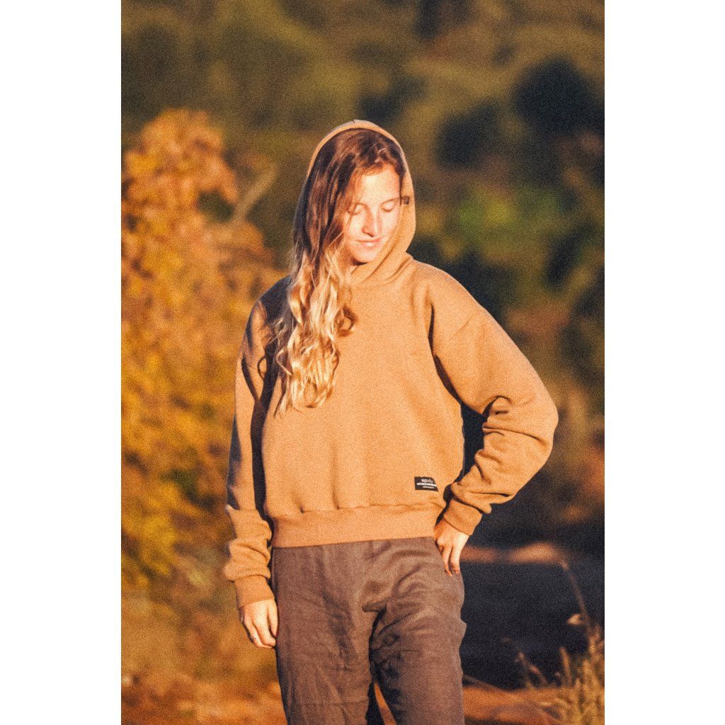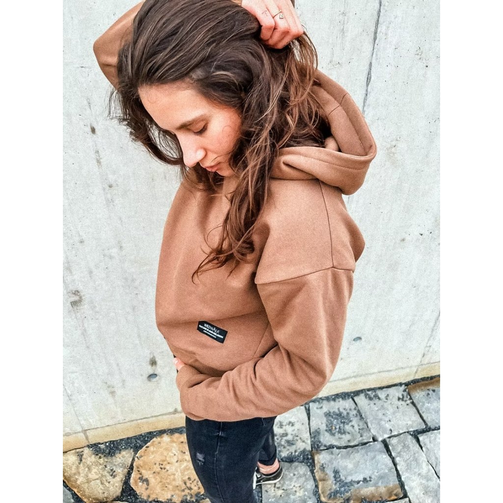 Kratší mikina s kapucí z počesané, hřejivé teplákoviny, co recyklací zrodila se.