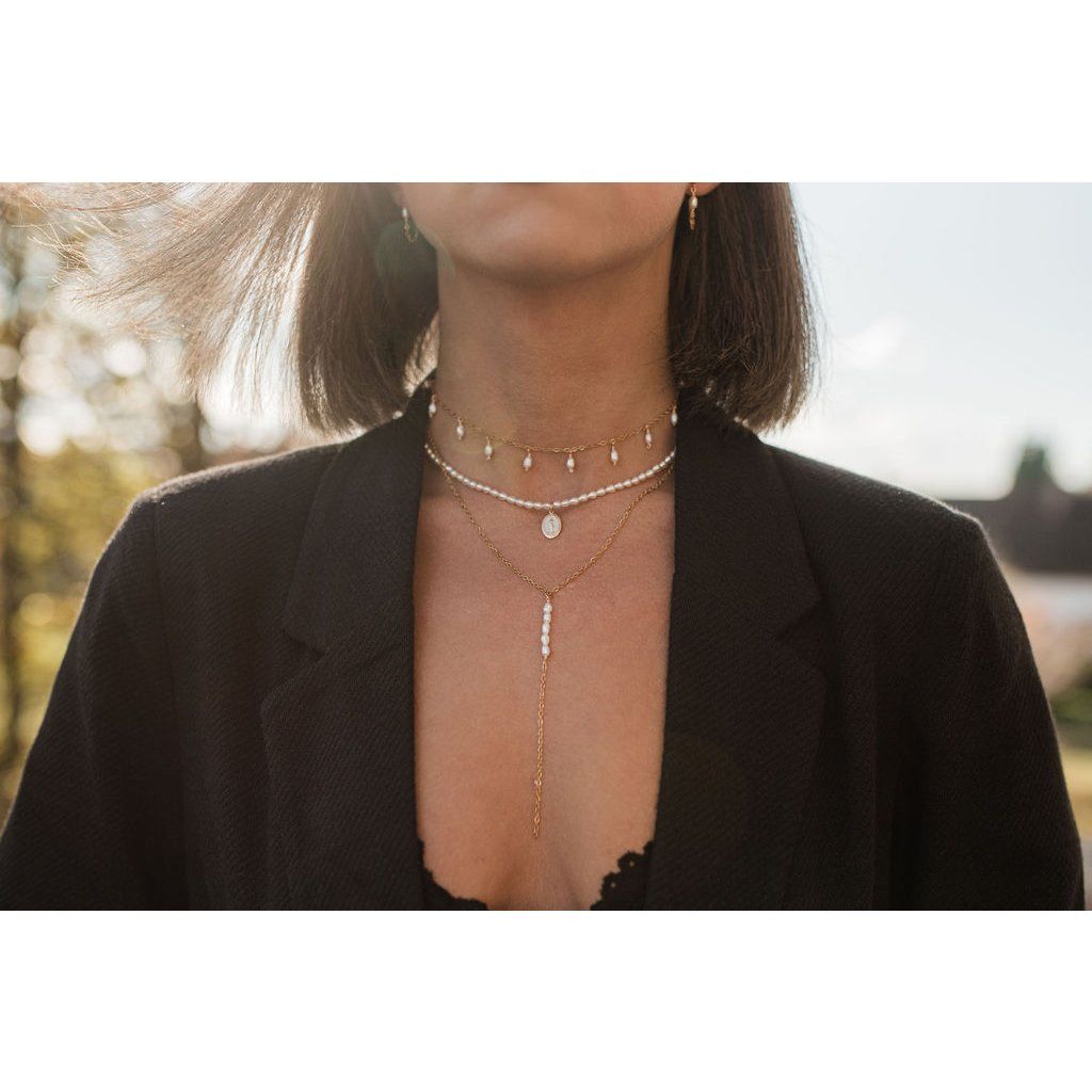 | Materiál | pozlacená nerez ocel, pravé sladkovodní perly |
