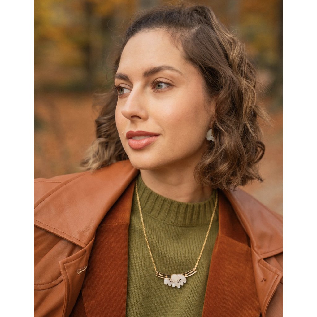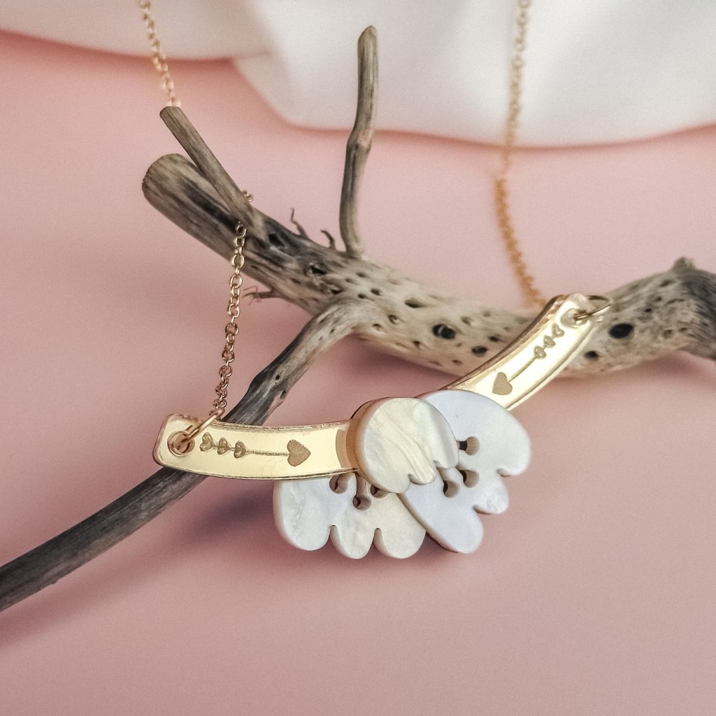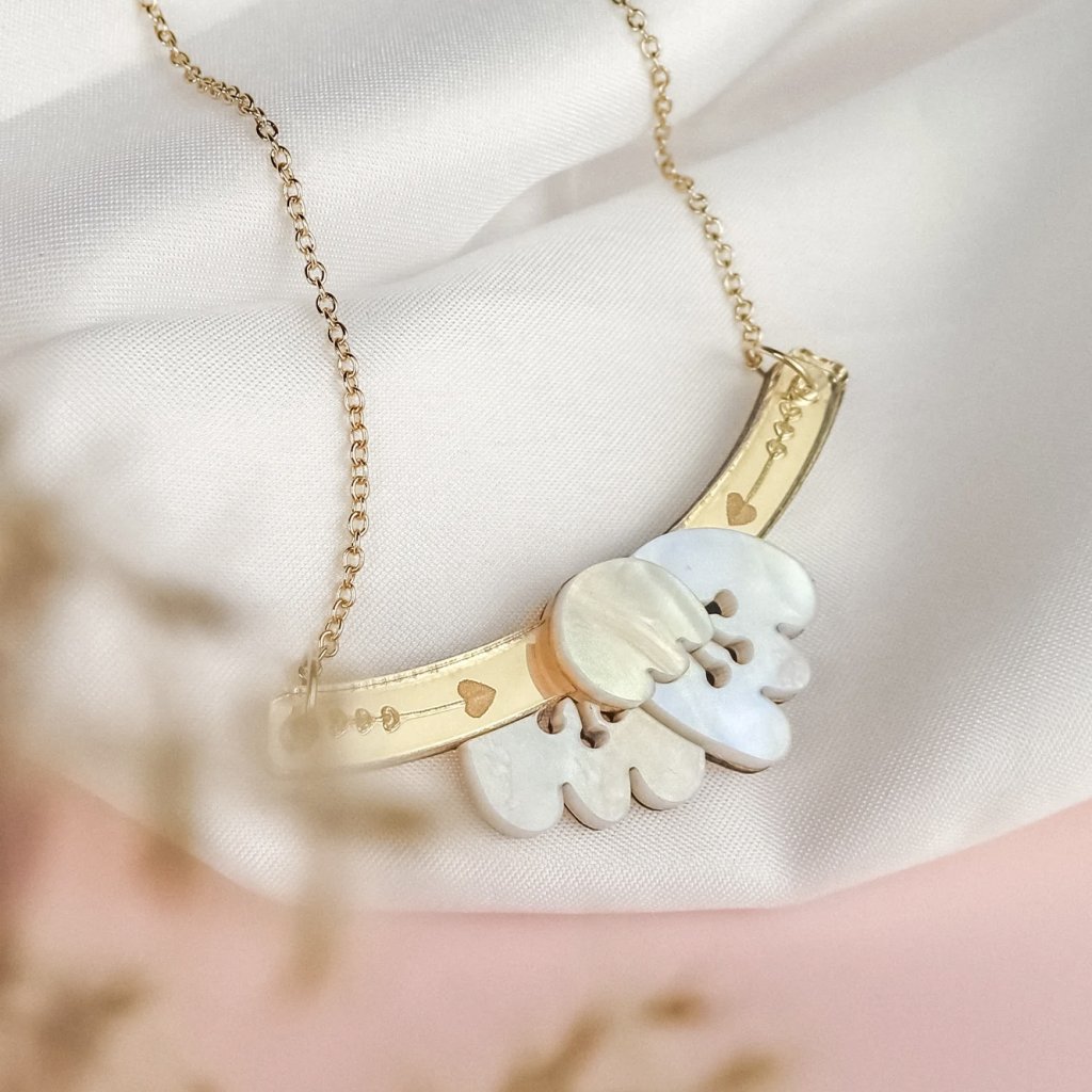 Elegantní a lehký, ručně vyrobený náhrdelník s tulipány spojuje romantické kouzlo s moderní sofistikovaností.