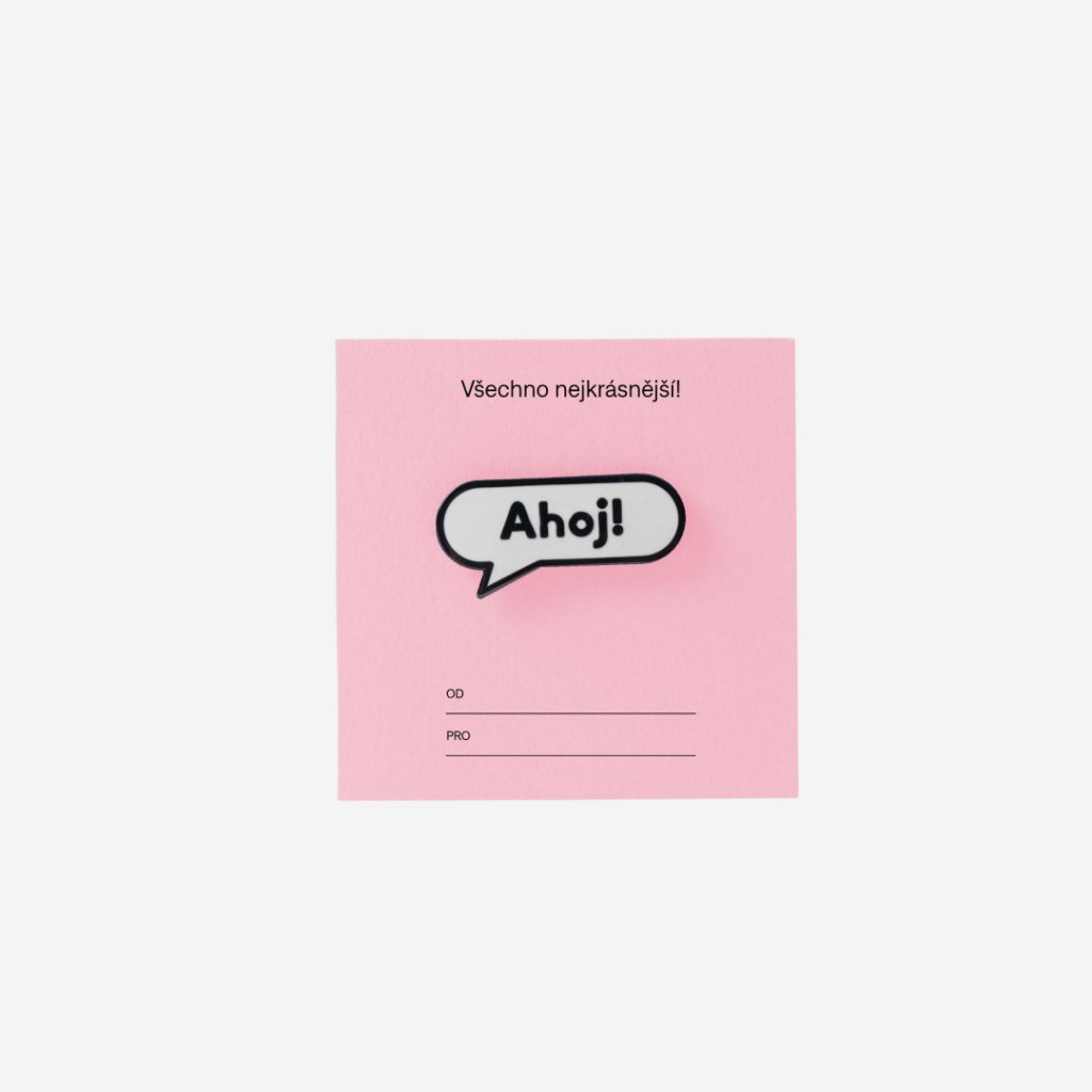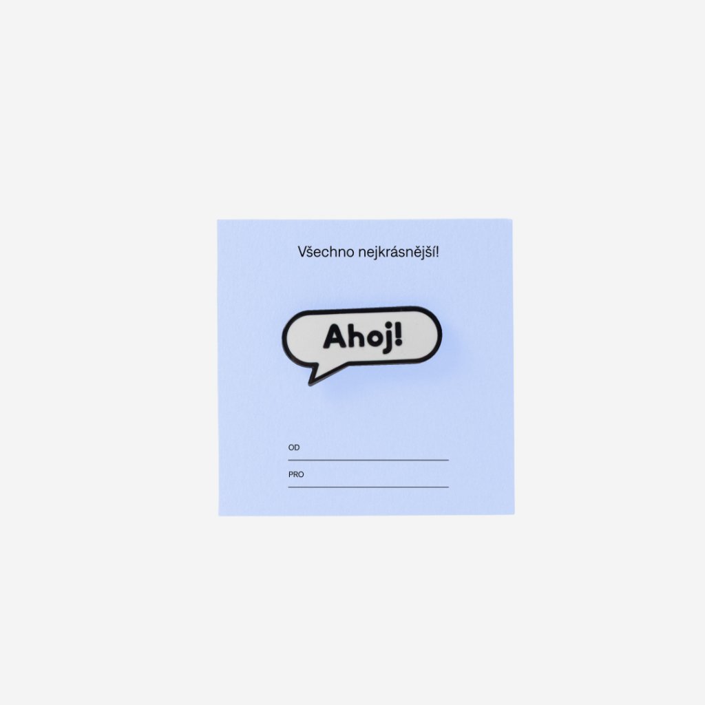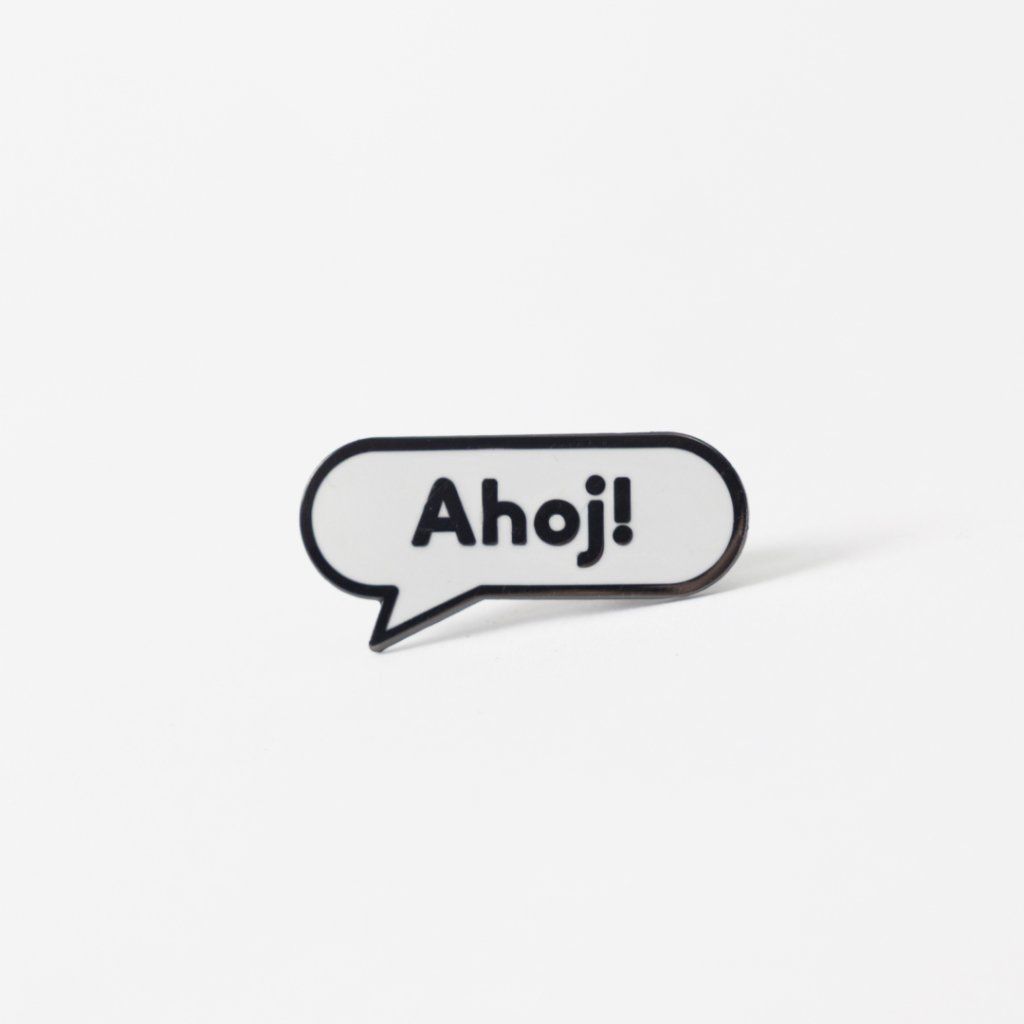 Pin s motivem Ahoj! raženého do mosazi, smaltovaný.