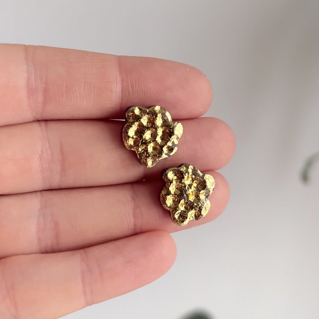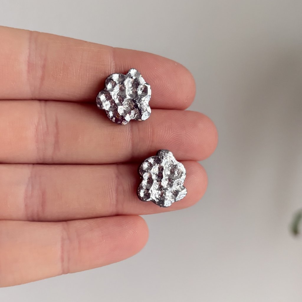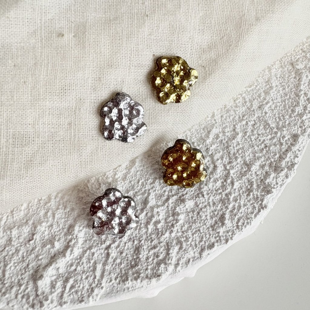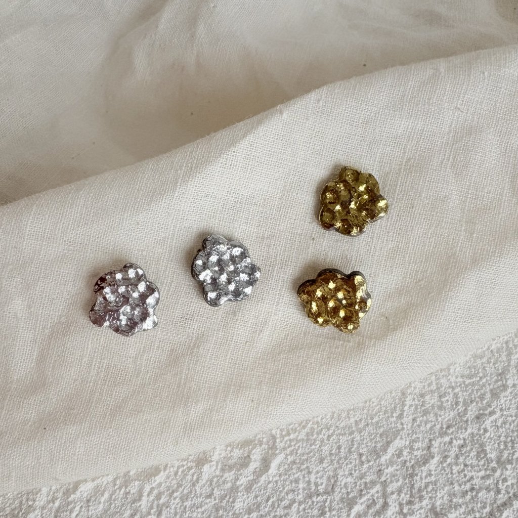 Jemné, ale přesto výrazné pecky připomínající drobné kamínky zalité světlem. Organický tvar a silný lesk dělají z každého páru malý šperk, který zazáří i v obyčejný den.