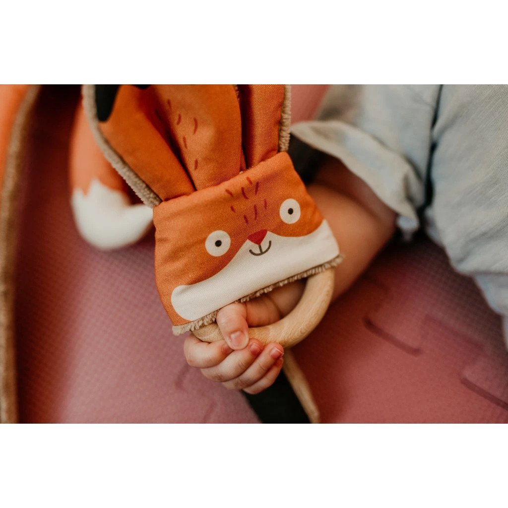 Jsem šustivý kamarád pro miminko (0 - 2 roky), které trápí zuby. Dásně svědí, bolí a miminko slintá a zkouší kousat vše včetně své ručičky. Dejte mu do ní tohohle ušatce a máte vystaráno. Dřevěný kroužek uleví od bolesti dásní při prořezávání zoubků. Dřevo působí antibakteriálně a je mnohem vhodnější než plasty. Různé materiály odvádí pozornost od bolesti.