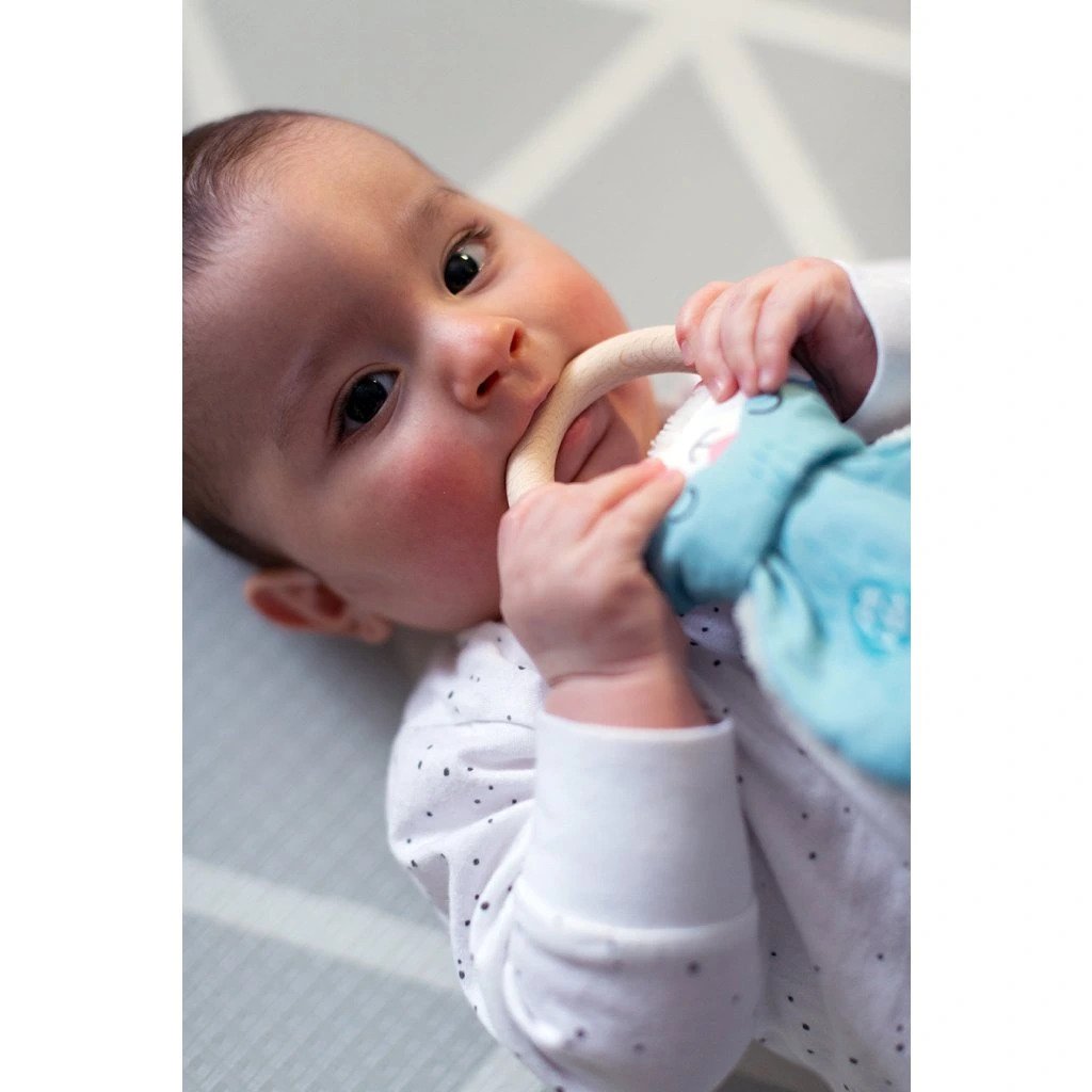 Jsem šustivý kamarád pro miminko (0 - 2 roky), které trápí zuby. Dásně svědí, bolí a miminko slintá a zkouší kousat vše včetně své ručičky. Dejte mu do ní tohohle ušatce a máte vystaráno. Dřevěný kroužek uleví od bolesti dásní při prořezávání zoubků. Dřevo působí antibakteriálně a je mnohem vhodnější než plasty. Různé materiály odvádí pozornost od bolesti.