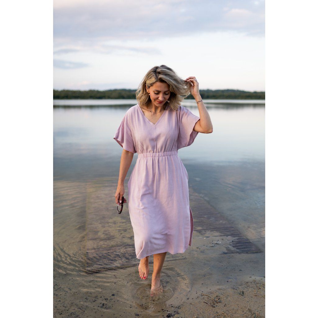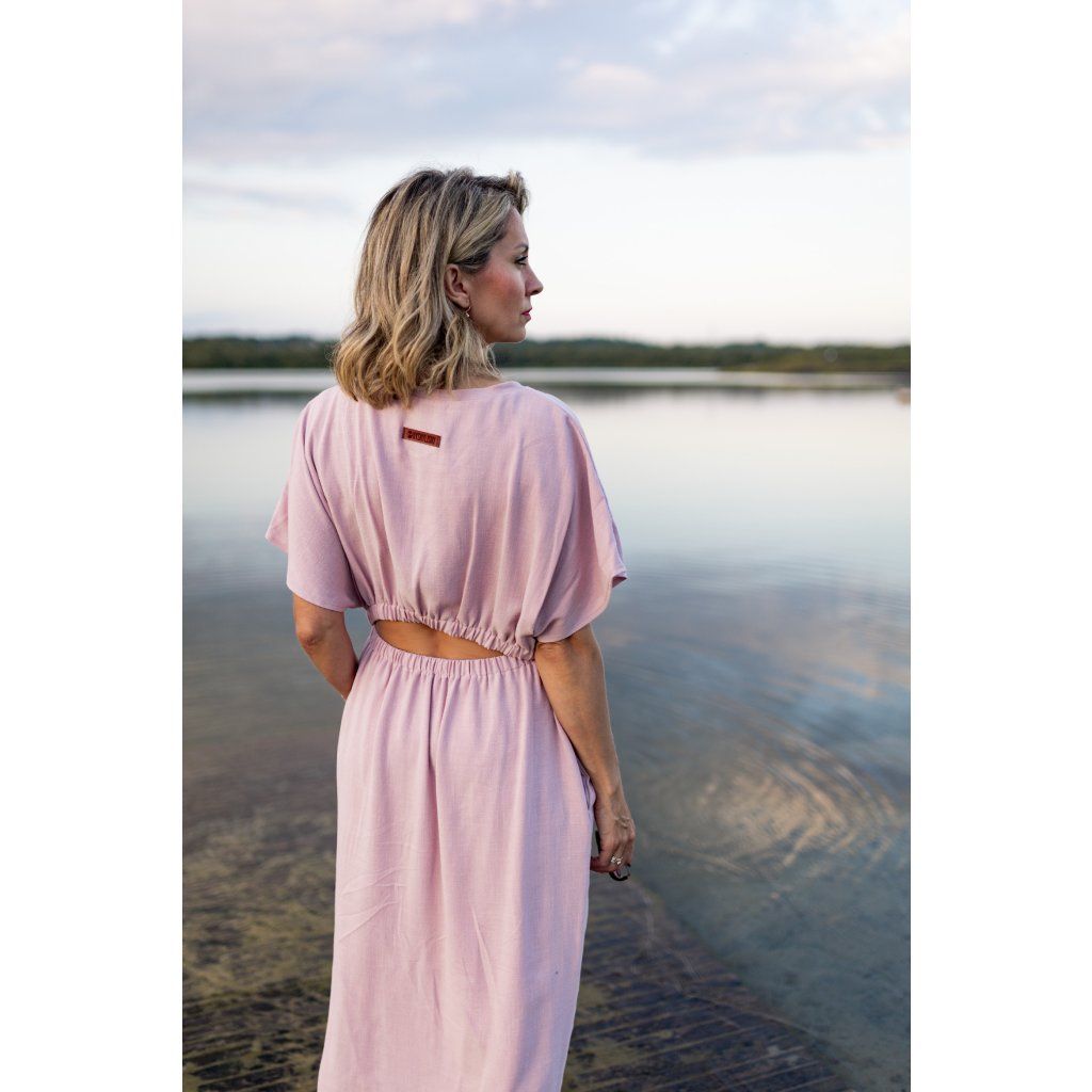 Bohémské šaty Back s otevřenými zády, vyrobené z jemné viskózy a prodyšného lnu.