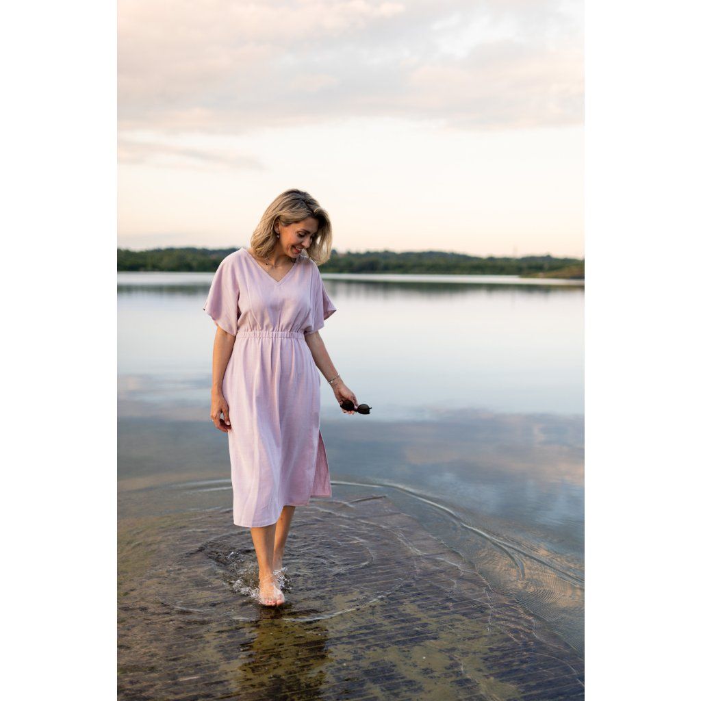 Tyto šaty jsou navrženy s důrazem na svobodu a pohodlí. Rafinovaný prvek otevřených zad odhaluje část zad, ale nechává utajeno, co má, čímž šaty působí neuvěřitelně svobodně, decentně a sexy zároveň. Délka do poloviny lýtek a boční kapsy dodávají praktický prvek a zajišťují, že šaty jsou vhodné pro každou příležitost.