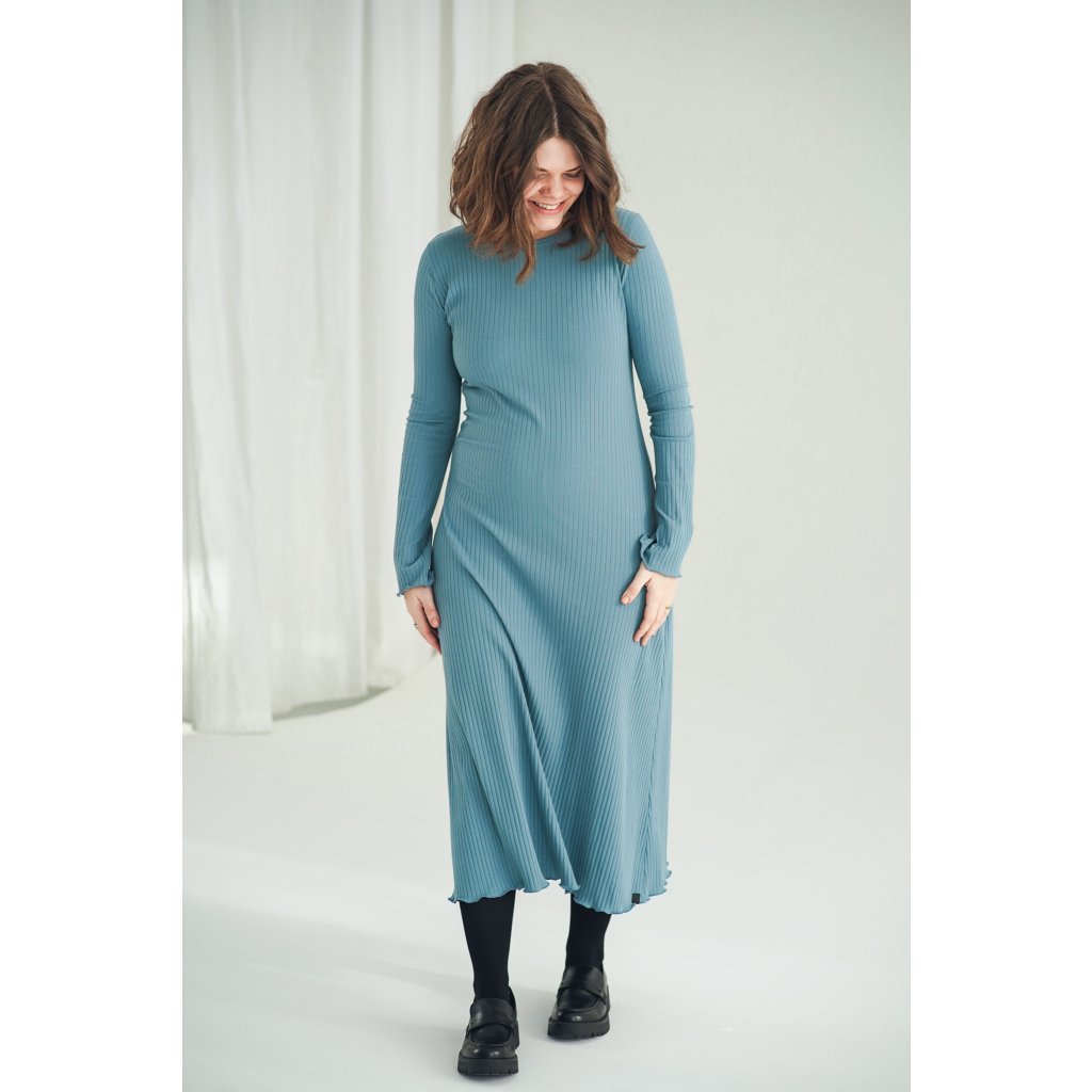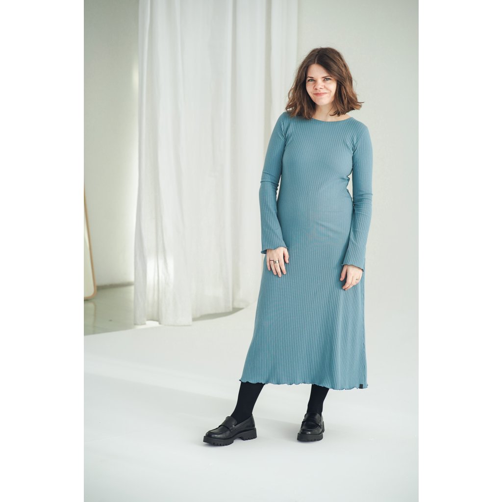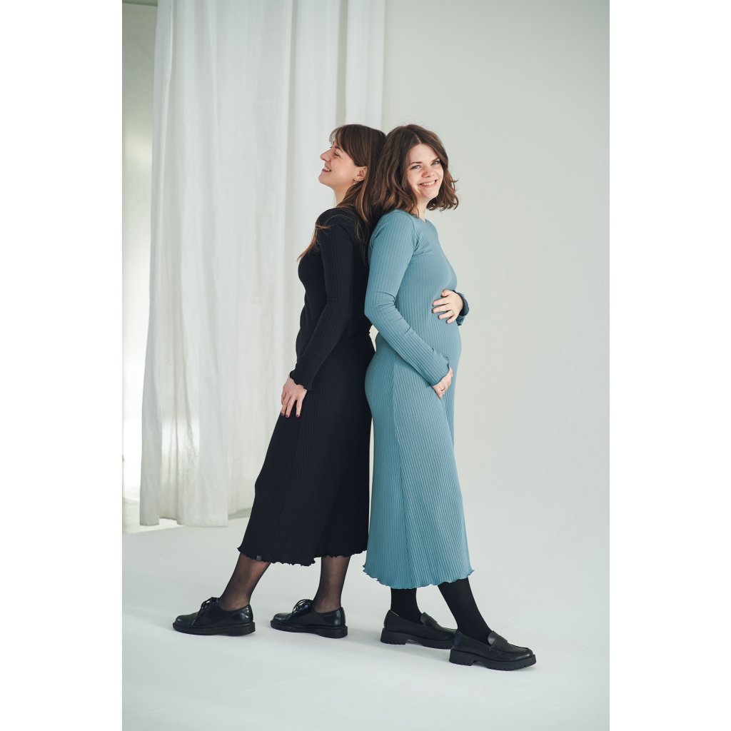 Šaty Bell Black jsou minimalistické šaty áčkového střihu s dlouhým rukávem, ušité z velmi příjemné žebrované bavlny a jsou ideální pro chladnější dny. Šaty můžete nosit jen tak nebo se silonkami a nebo je doplnit koženým páskem, je to jen na Vás. Jsou velmi pohodlné, sluší mnoha typům postav, díky áčkovému střihu lichotí i širším bokům. Šaty unosíte od podzimu do jara a krásně se do nich vejde i těhotenské bříško.