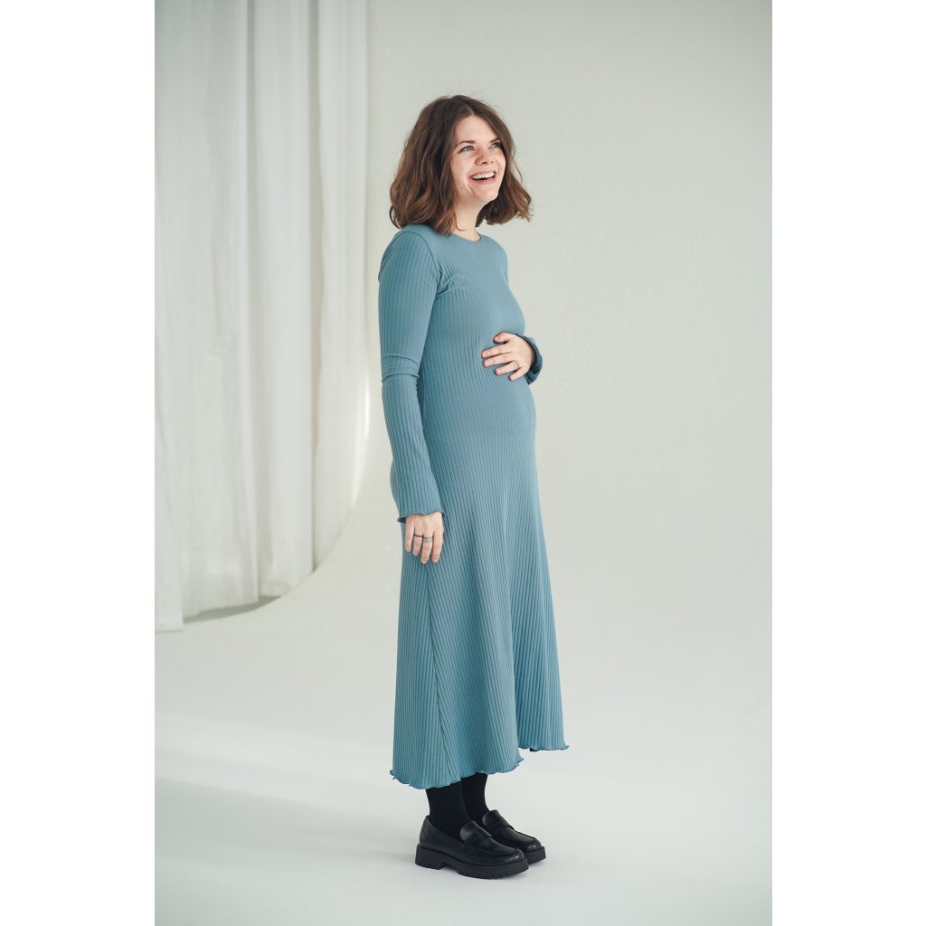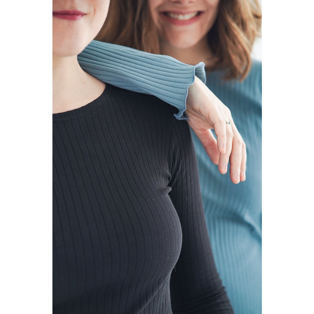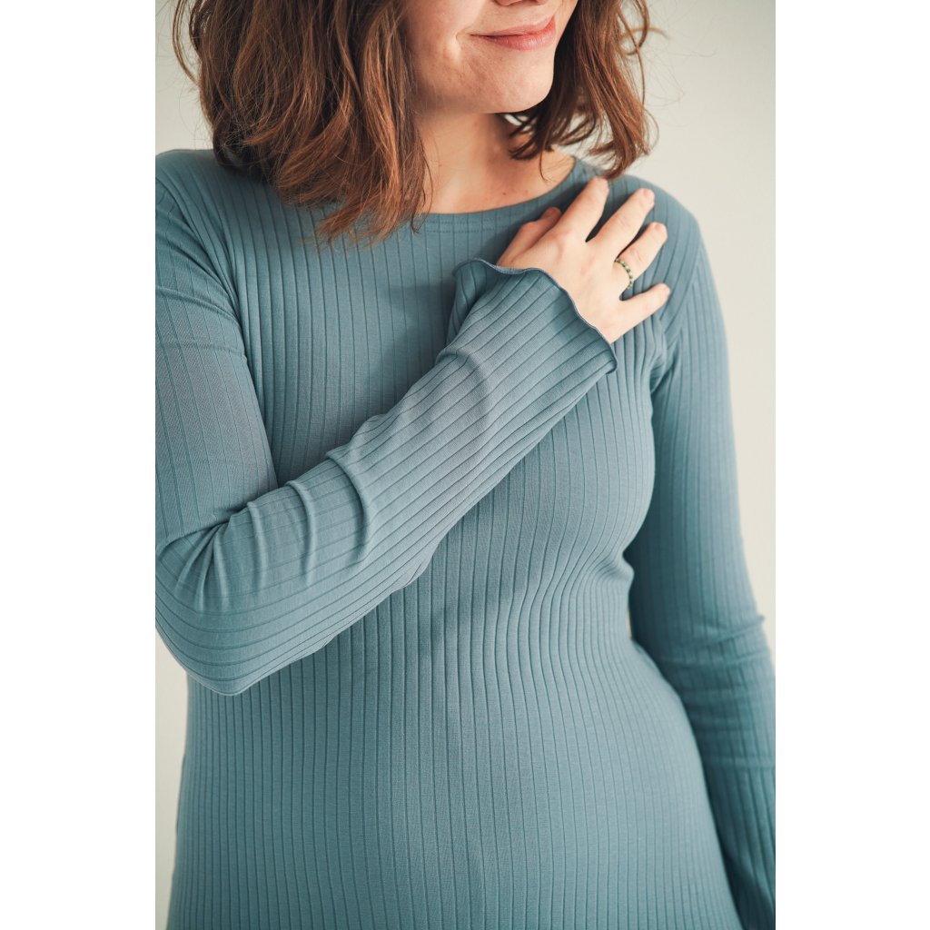 Šaty Bell Black jsou minimalistické šaty áčkového střihu s dlouhým rukávem, ušité z velmi příjemné žebrované bavlny a jsou ideální pro chladnější dny. Šaty můžete nosit jen tak nebo se silonkami a nebo je doplnit koženým páskem, je to jen na Vás. Jsou velmi pohodlné, sluší mnoha typům postav, díky áčkovému střihu lichotí i širším bokům. Šaty unosíte od podzimu do jara a krásně se do nich vejde i těhotenské bříško.