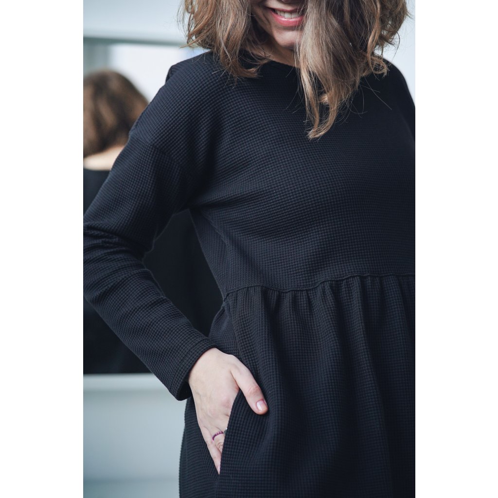 Šaty Wafle jsou ušité z velmi příjemné a hřejivé bavlny – vafloviny a jsou ideální pro chladnější dny. Jsou inspirované našimi původními oboustrannými šaty Wafle, ale tyto jsou jednostranné, mají jemný kulatý výstřih a dlouhý rukáv. Nechybí jim samozřejmě praktické kapsy a sluší jim to i se všemi našimi koženými pásky. Jsou velmi slušivé, pohodlné, sedí spoustě typům postav. Šaty vychází ze střihu našich nejprodávanějších šatů Simple, ale kvůli elastanu ve vaflovině doporučujeme objednat o číslo menší velikost, než nosíte u právě našich šatů Simple z mušelínu.