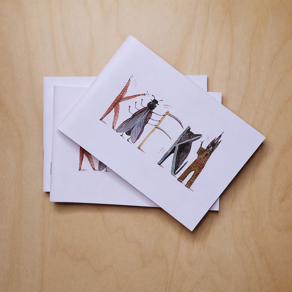Sešit s autorskou ilustrací inspirovanou motivem Franze Kafky.
