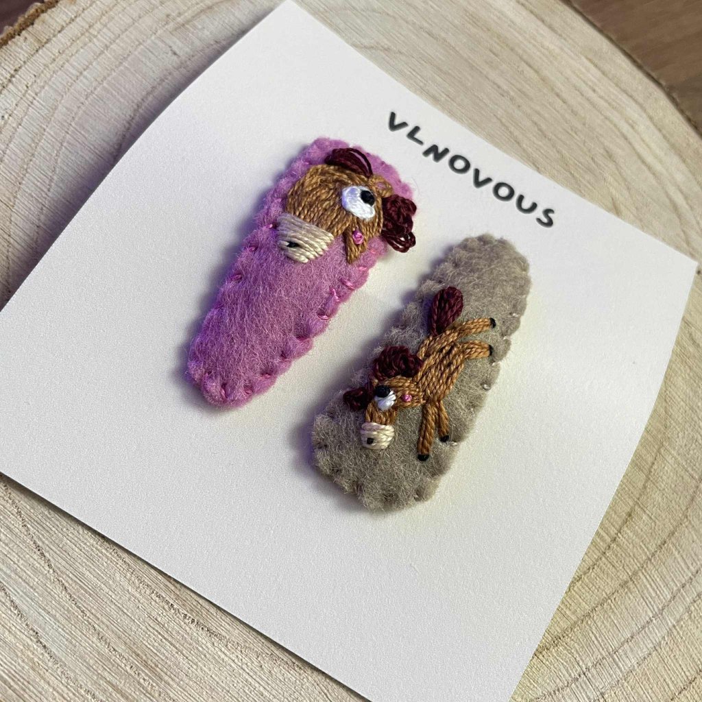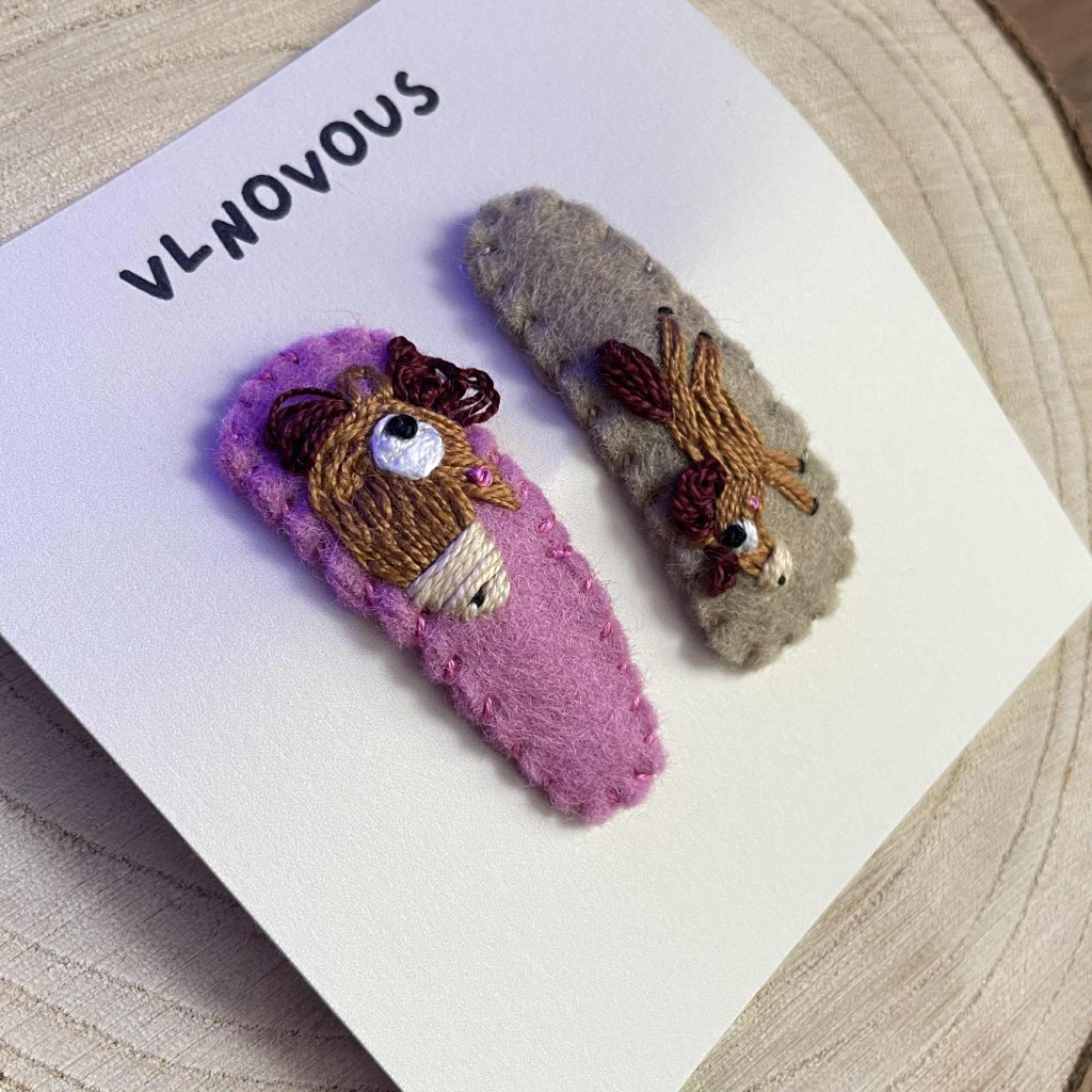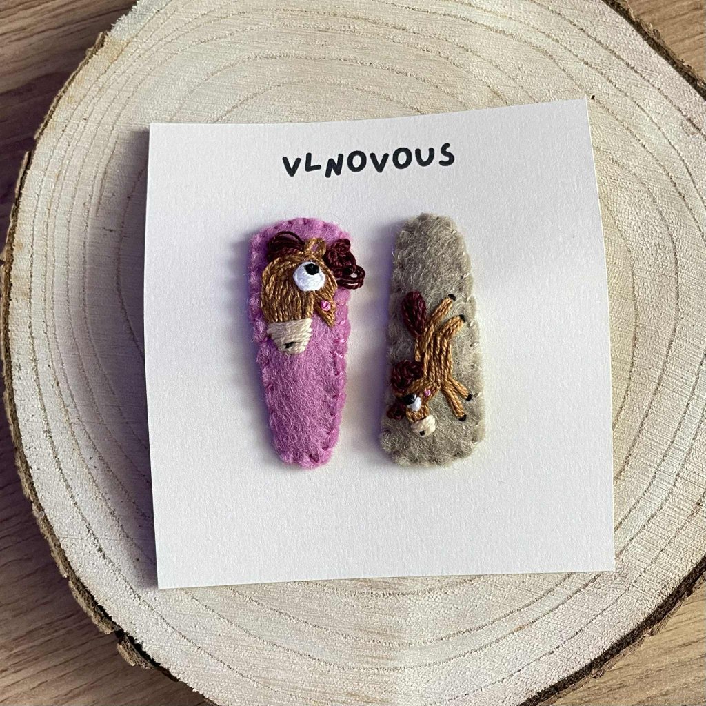 Ručně vyrobené sponky (2ks) z plsti s autorským motivem.