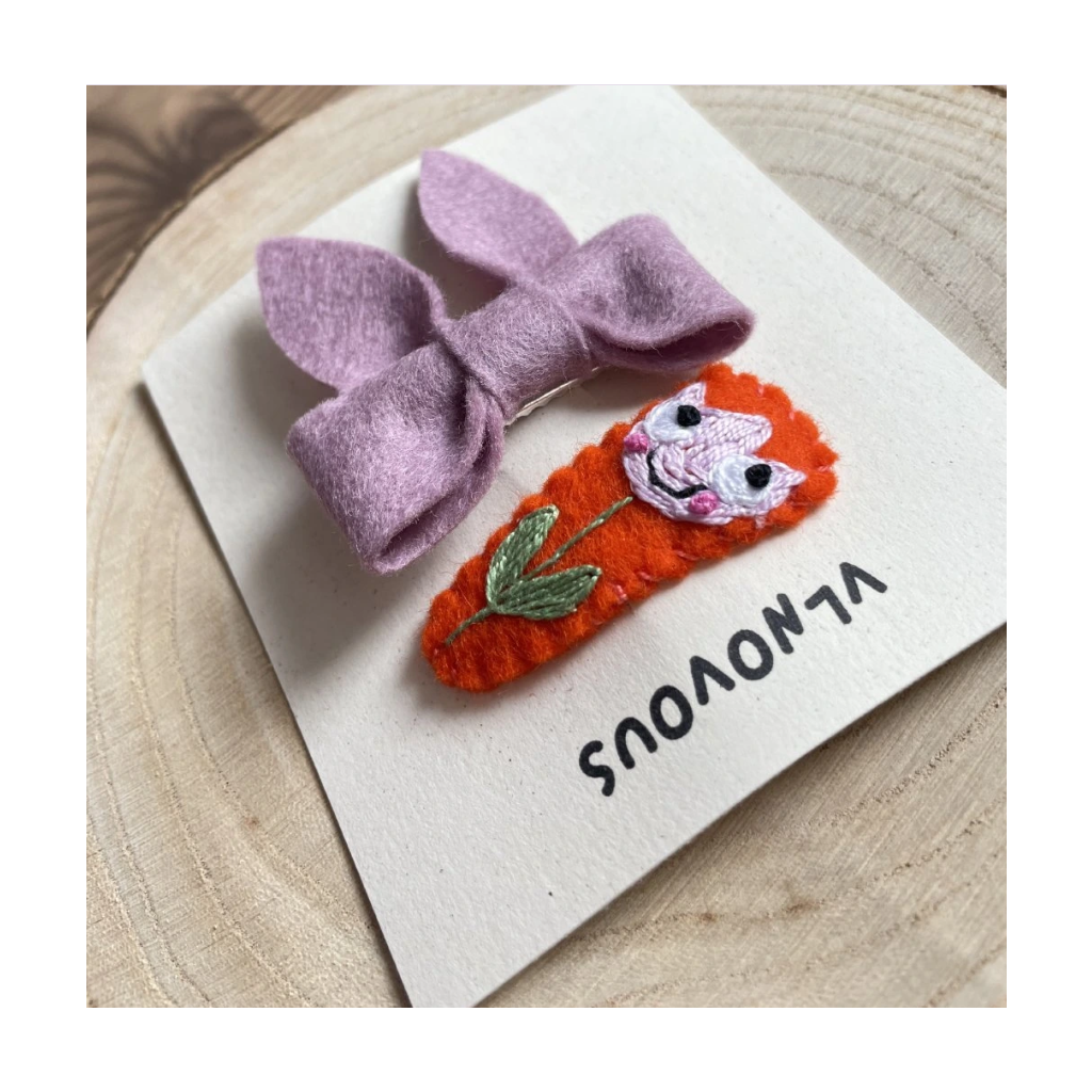 Ručně vyrobené sponky (2ks) z plsti s autorským motivem.