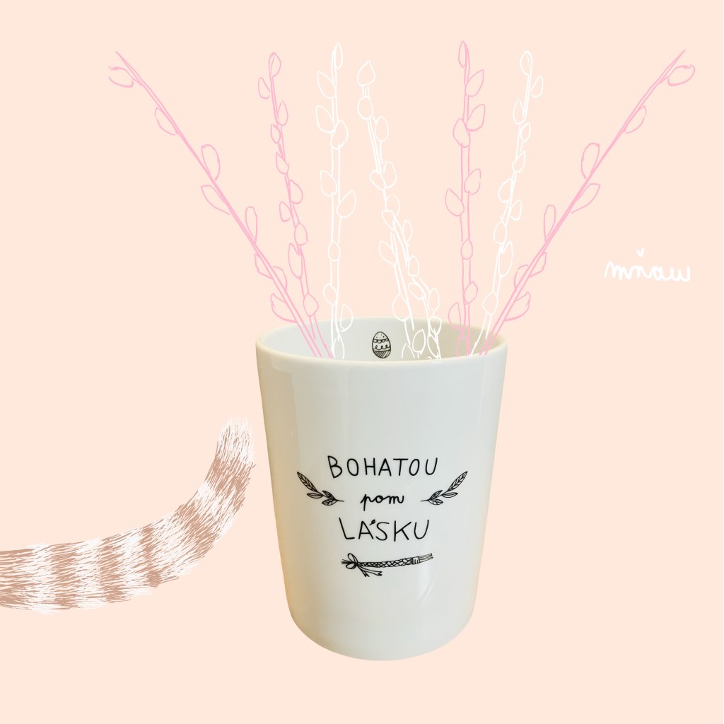 Velikonoce s úsměvem. Porcelánová váza s nápisem „Bohatou pom lásku“ si pohrává s tradiční pomlázkou a přináší ji v něžnější, láskyplné verzi. Ideální pro jarní květiny jako tulipány, narcisky, kočičky nebo zlatý déšť, které krásně doplní velikonoční atmosféru a ozdobí tvůj stůl i interiér.