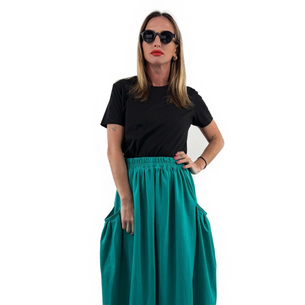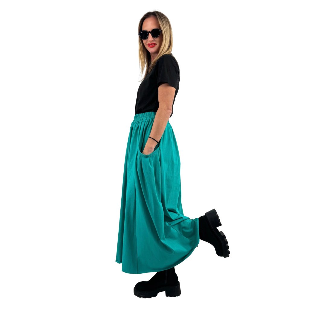 Sukně z příjemné BIO bavlny s velkými bočními kapsami.