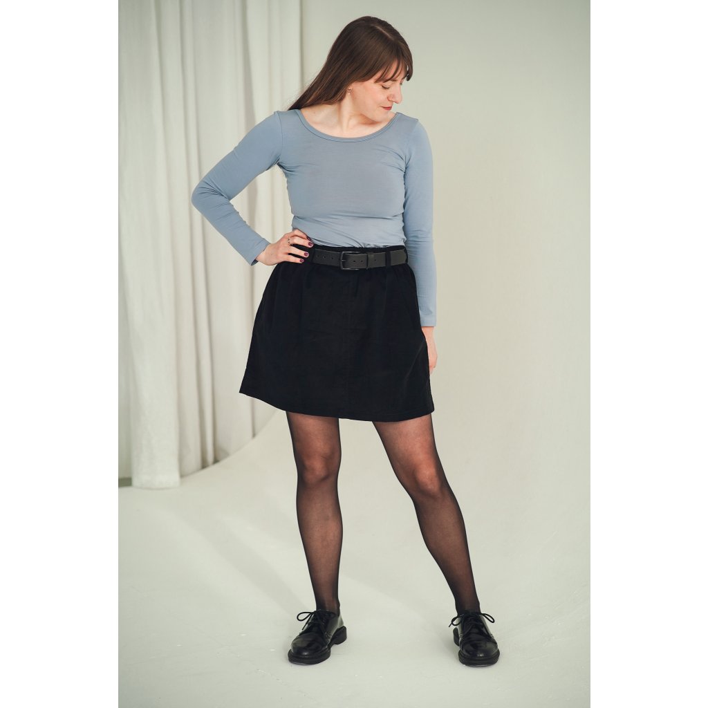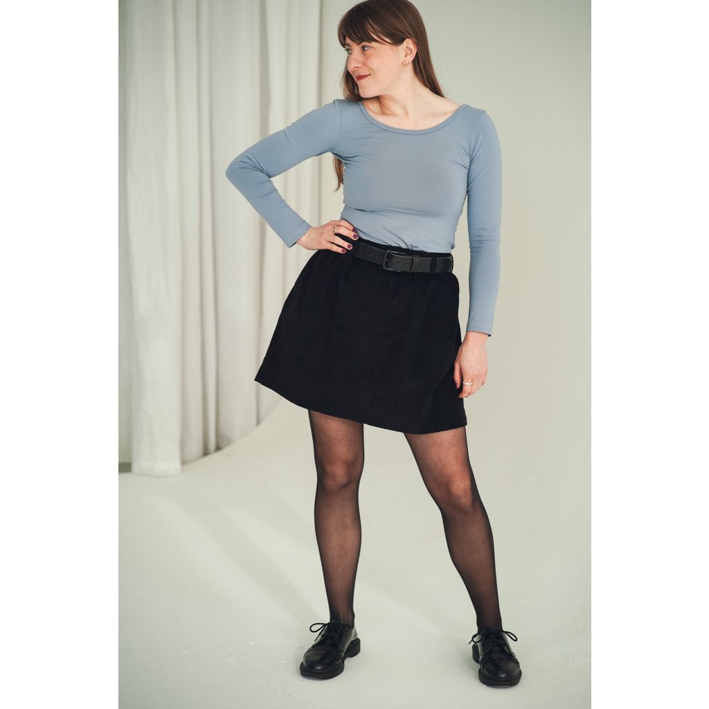 Krátká zero waste sukně s kapsami a poutky na pásek, která je opravdu udržitelným kouskem, protože je ušitá pouze z prostřihů, které nám vznikají při výrobě. Sukně je lehoučká, v pase má pružnou gumu, která se přizpůsobí a díky poutkám ji můžete doplnit páskem, doporučujeme ty naše kožené.