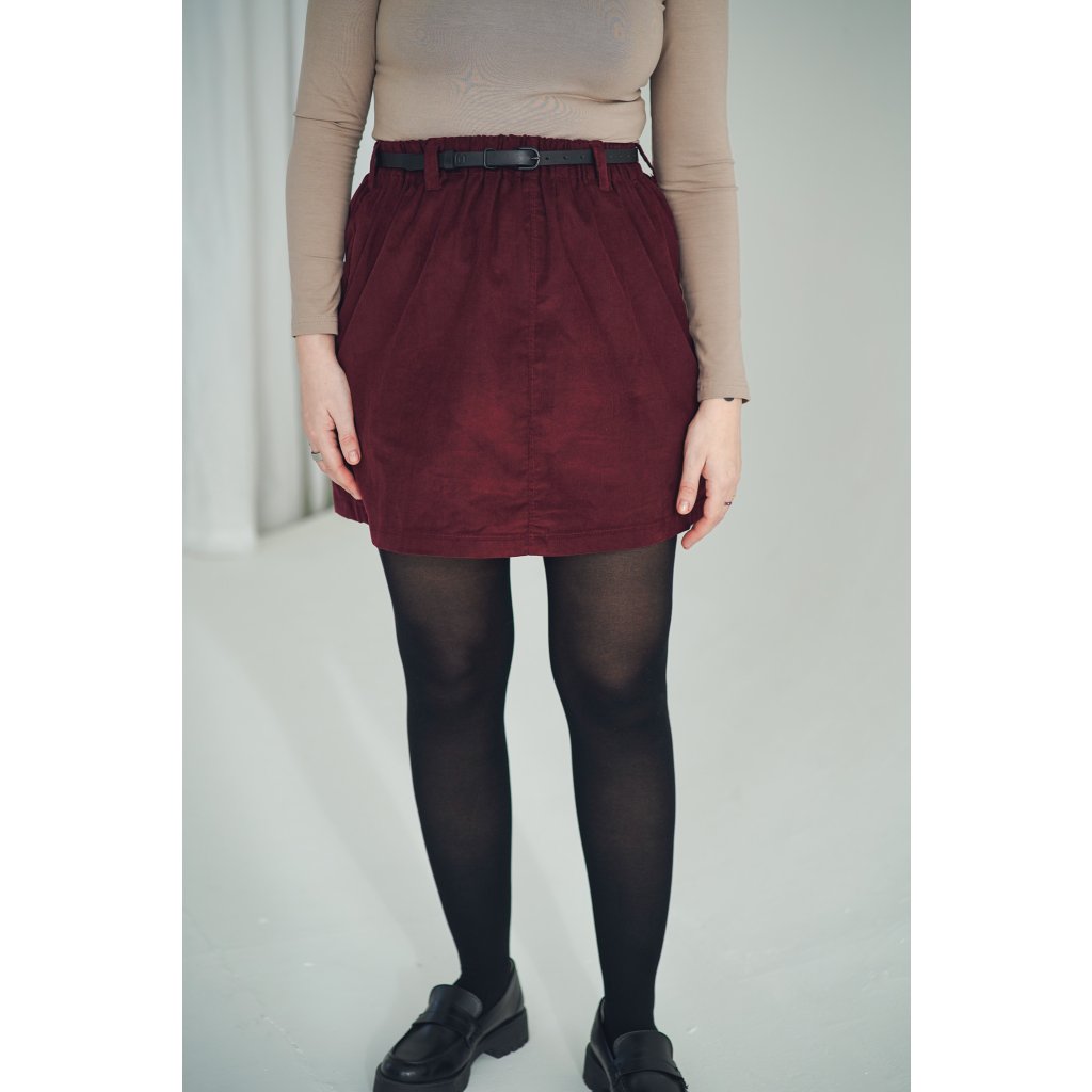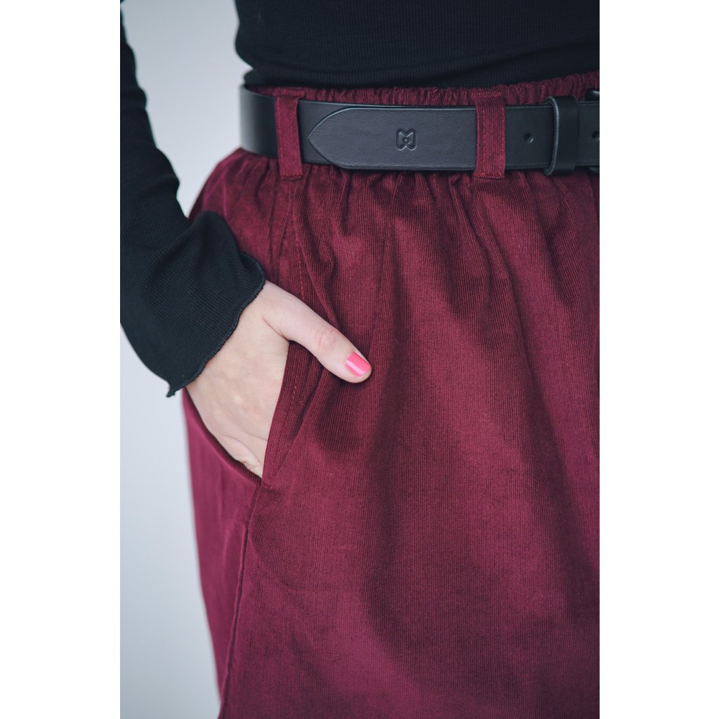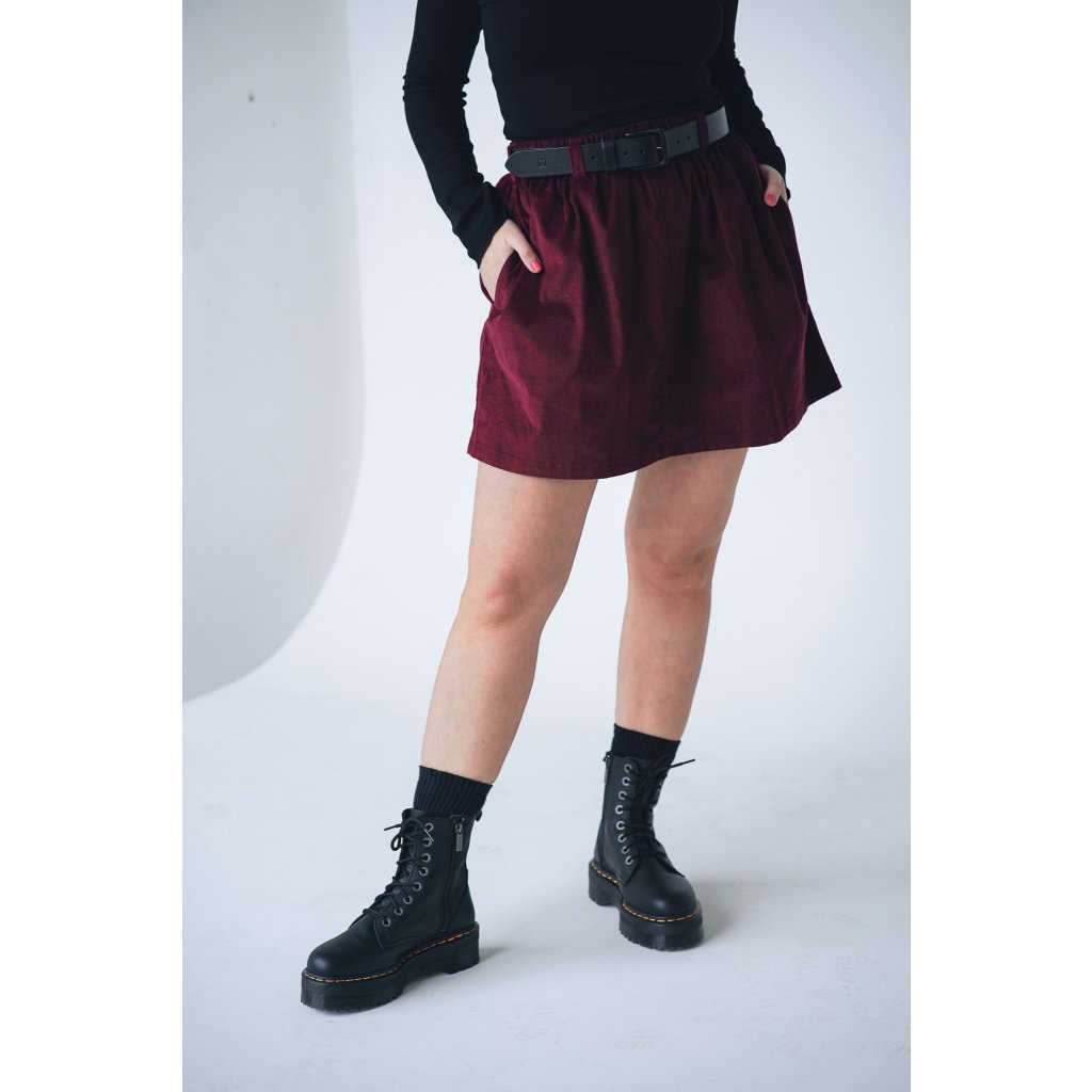 Krátká zero waste sukně s kapsami a poutky na pásek, která je opravdu udržitelným kouskem, protože je ušitá pouze z prostřihů, které nám vznikají při výrobě. Sukně je lehoučká, v pase má pružnou gumu, která se přizpůsobí a díky poutkám ji můžete doplnit páskem, doporučujeme ty naše kožené.