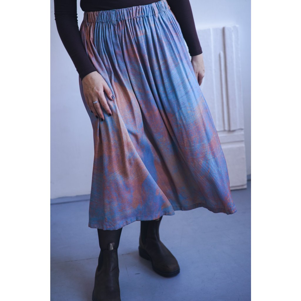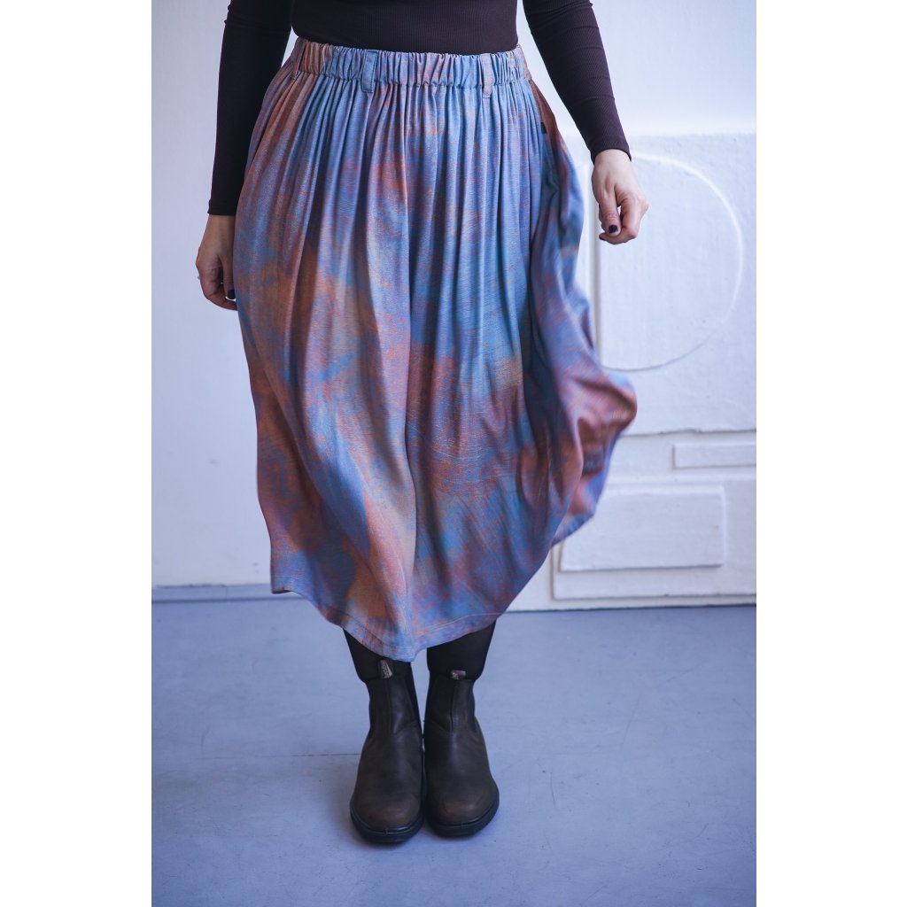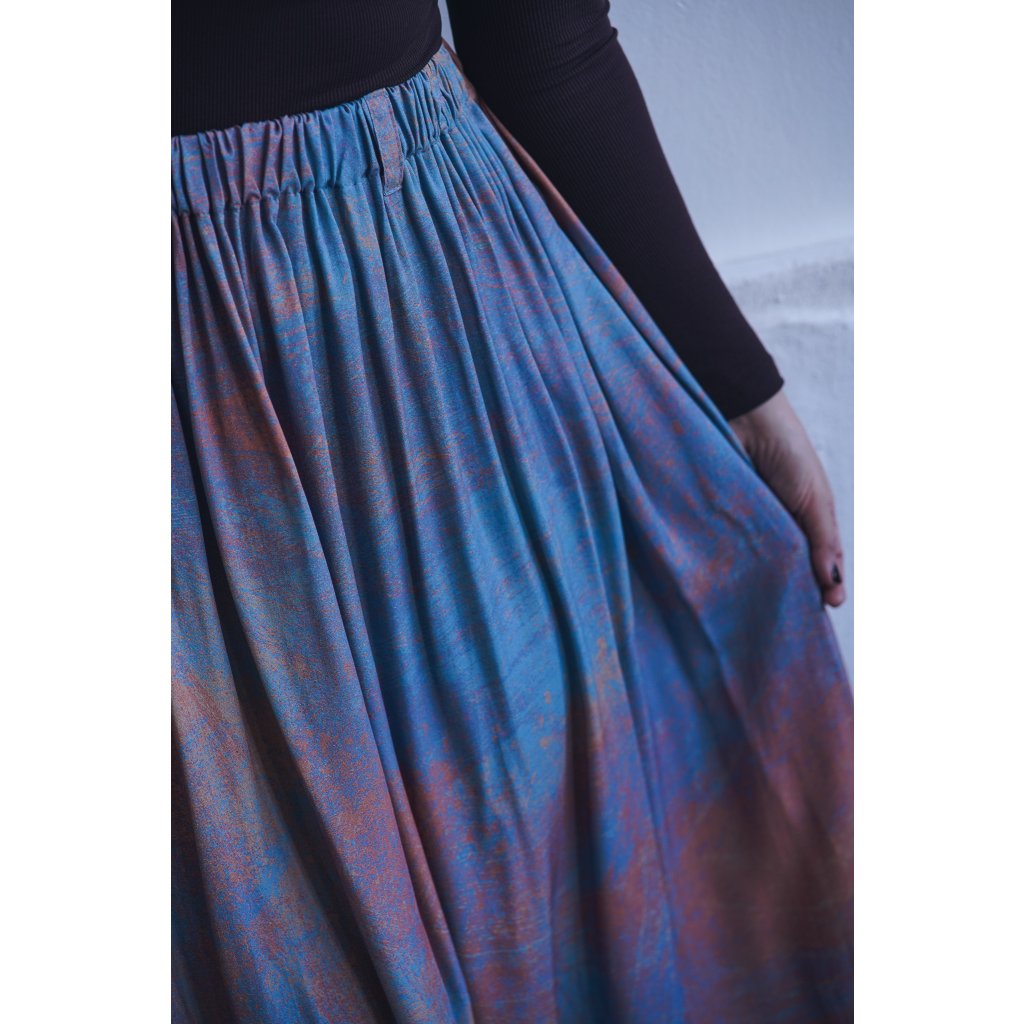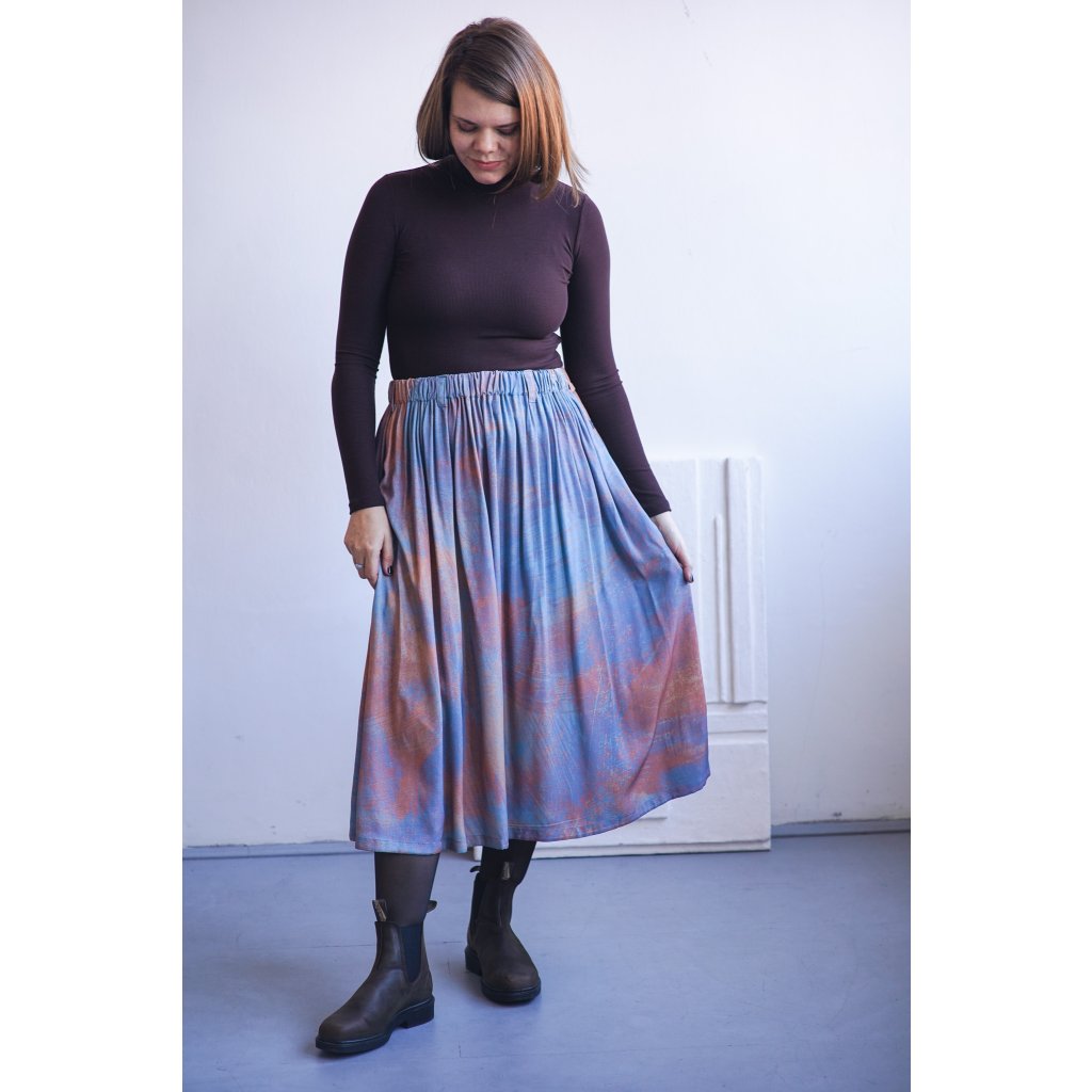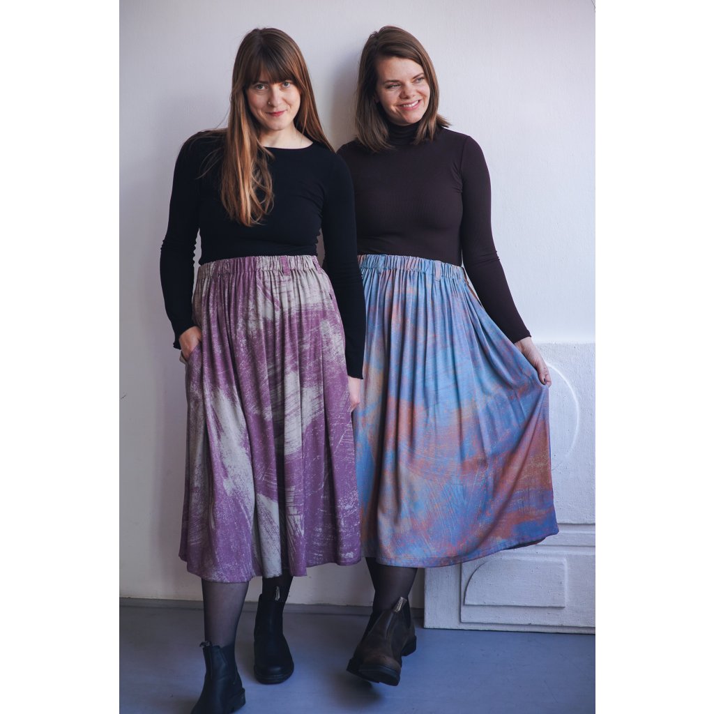 Dlouhá a široká sukně s kapsami a poutky na pásek z naší limitované autorské látky je ideální na celoroční nošení. Je to univerzální kousek, který padne každé postavě. Sukně působí elegantním dojmem a zároveň je velmi pohodlná a v pase má pružnou gumu, která se přizpůsobí. Tento model je vhodný i pro postavy s širšími boky.