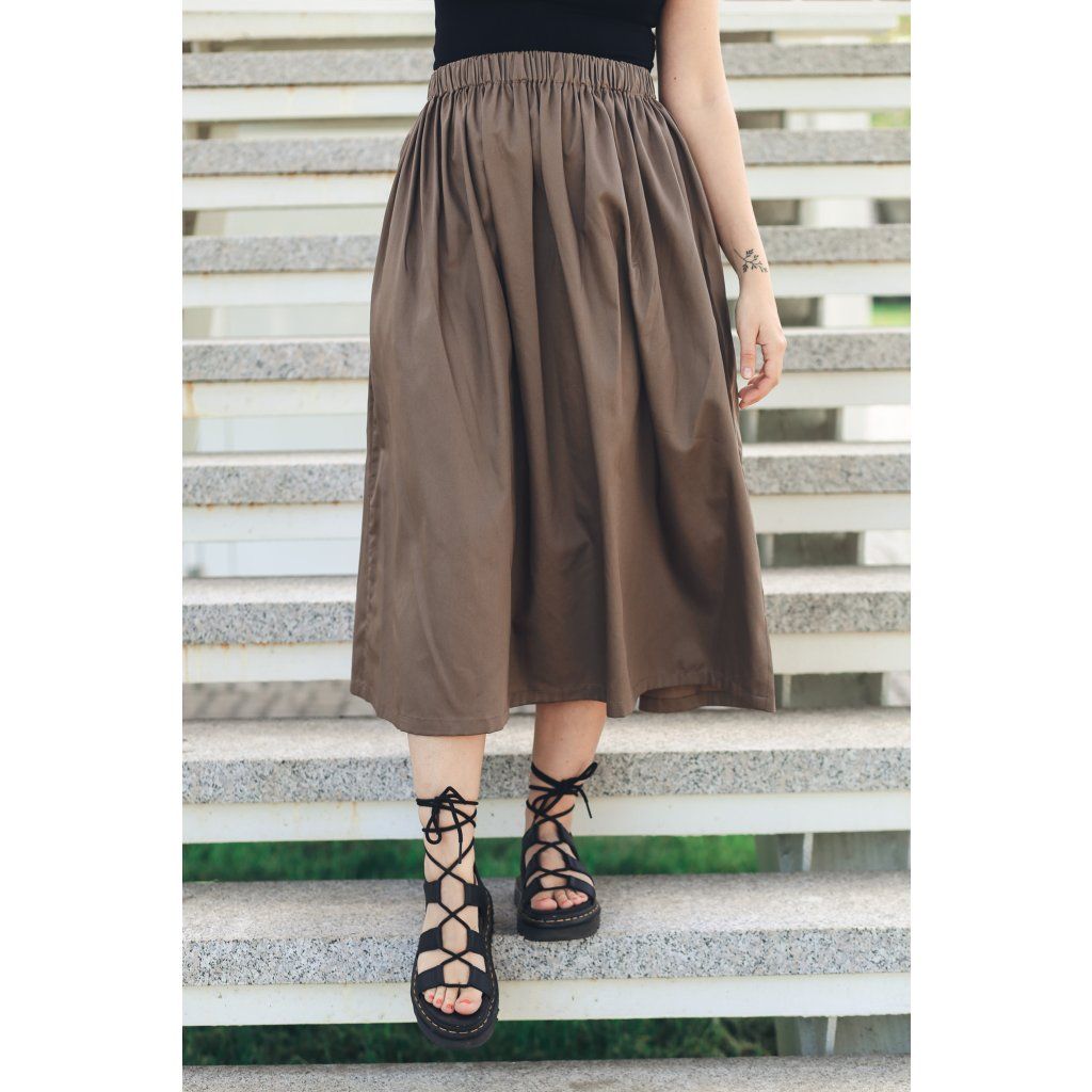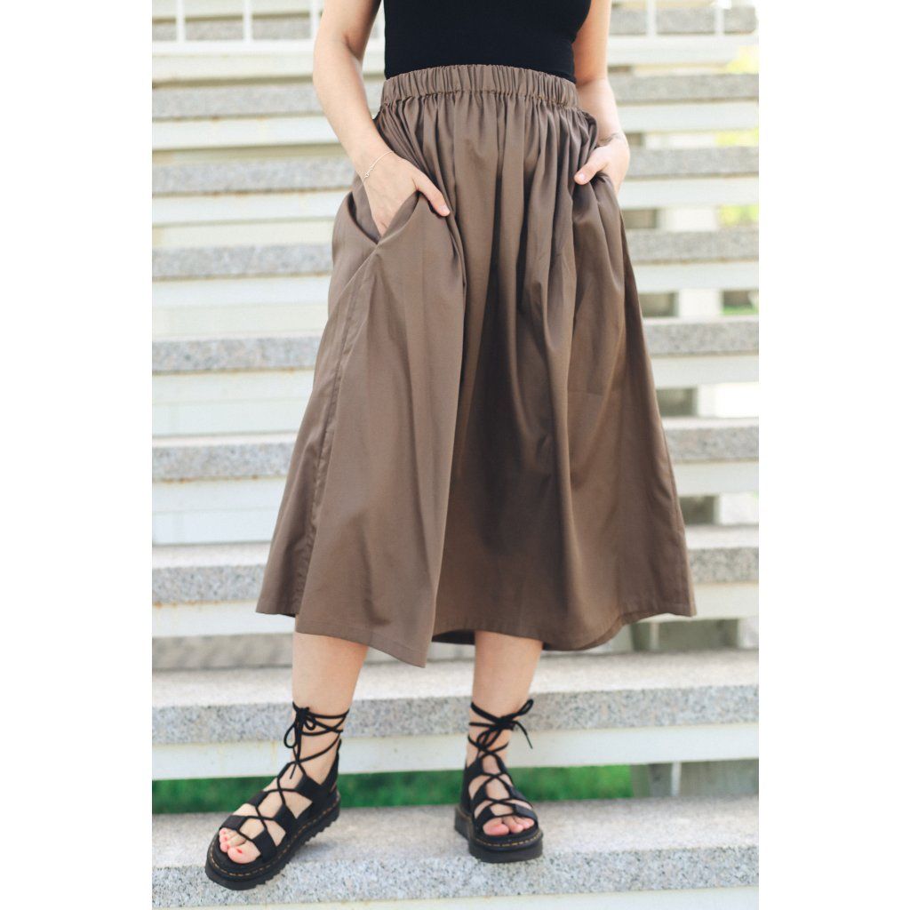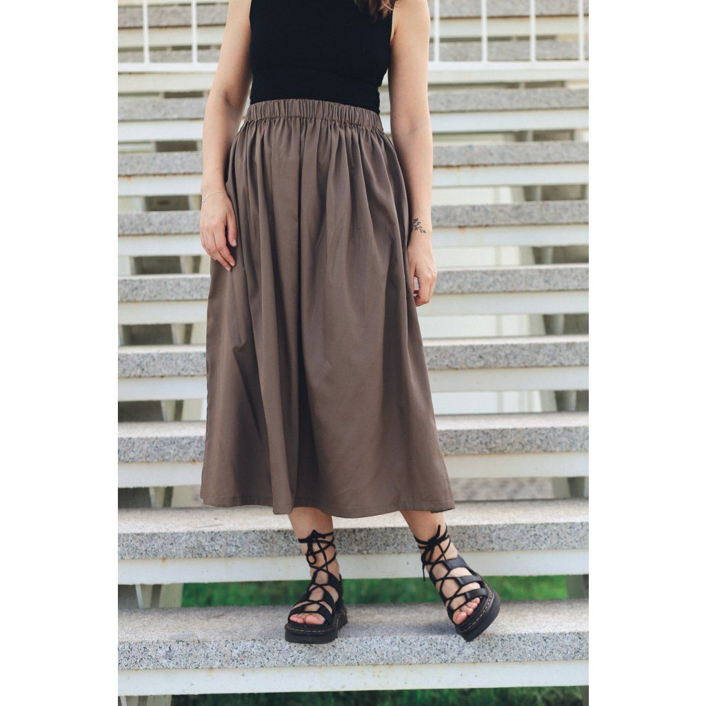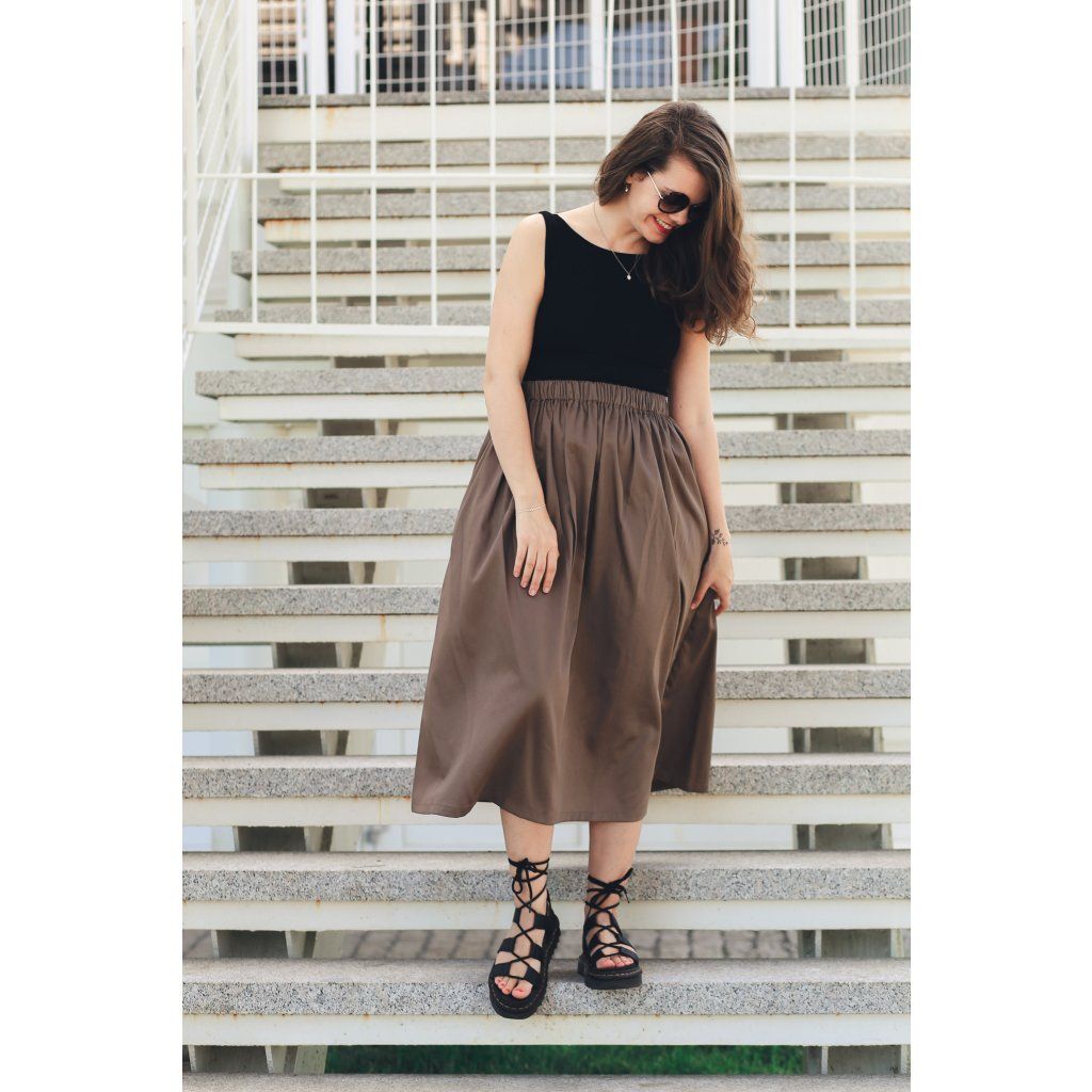 Dlouhá a široká sukně s kapsami a nově také s poutky, která je ušitá z elegantní a lehoučké saténové bavlny. Univerzální kousek, který padne každé postavě. Sukně je lehoučká, splývavá a velmi slušivá a v pase má pružnou gumu, která se přizpůsobí a poutka.