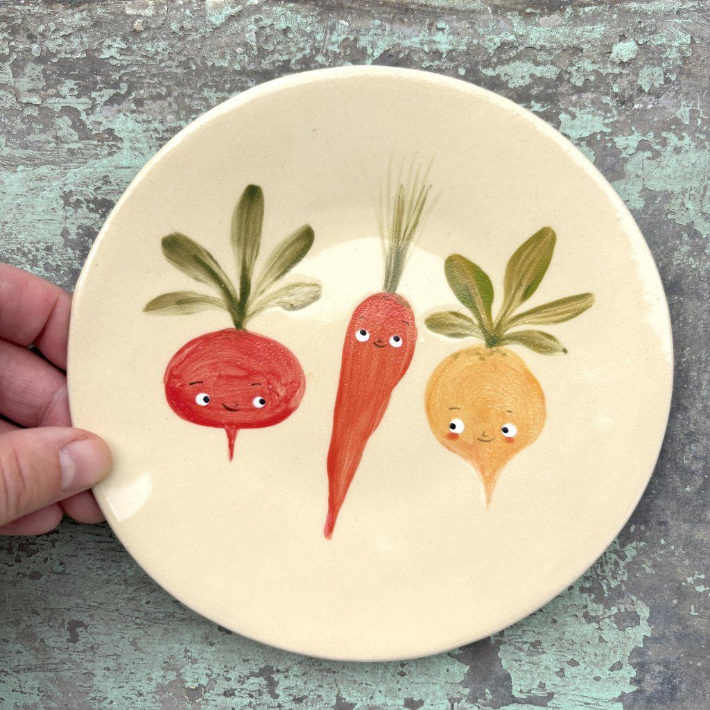 Je ručně modelovaný a tvar je tedy mírně nepravidelný. Glazováno a pomalováno barvami (občasné drobné krakelování glazury není závada)