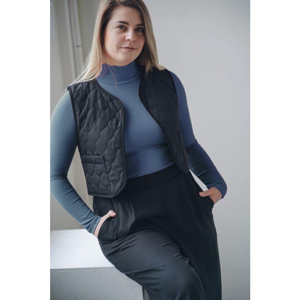 Tričko se stojáčkem a dlouhými rukávy je ušité z tenkého žebrovitého viskózového úpletu, vypadá skvěle zastrčené v kalhotách či v sukni. Tohle tričko v černé barvě je univerzální kousek, který skvěle doplní Váš outfit a vyrýsuje ženské křivky a krásně se s ním dá vrstvit. I když je materiál tenčí, viskóza vás v zimě krásně zahřeje.